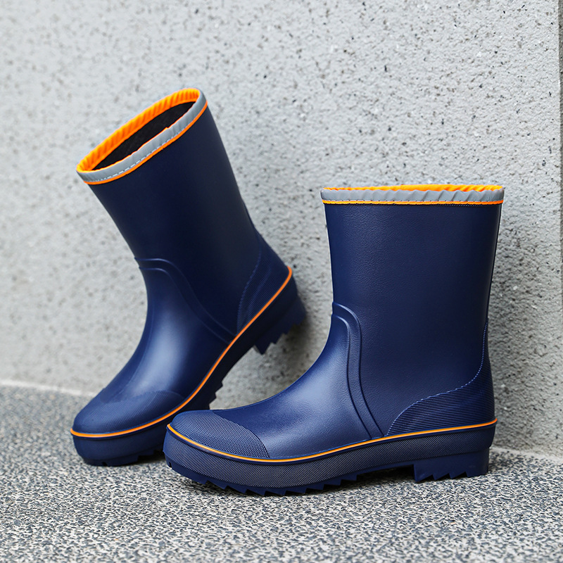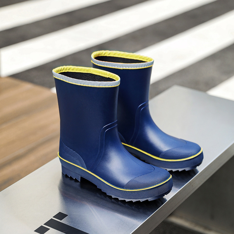 새로운 영국 장화 남성용 중간 튜브 방수 캐주얼 장화 경량 주방 미끄럼 방지 고무 신발 작업용 두꺼운 바닥 물 신발스토어 가기
