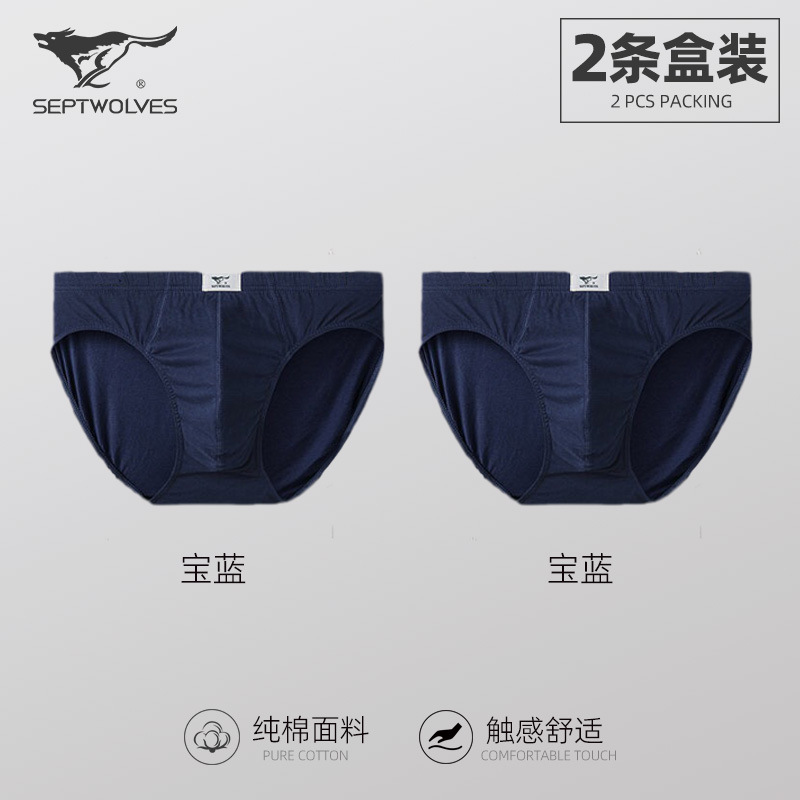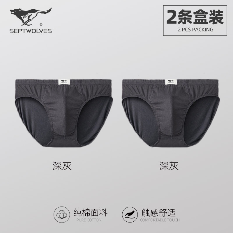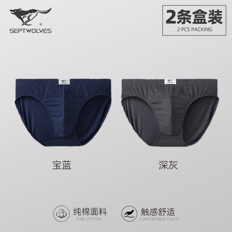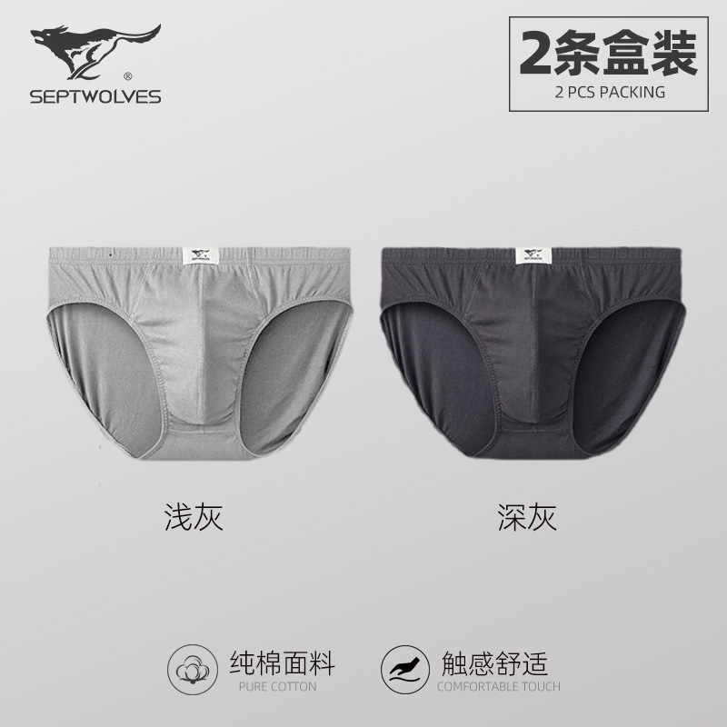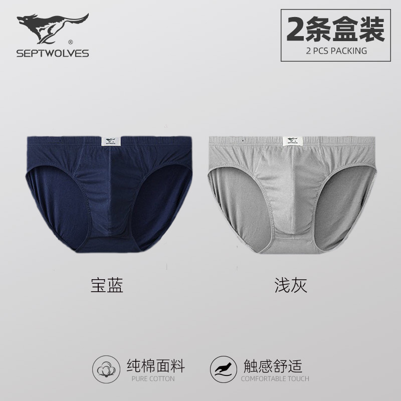 일곱 늑대 순면 남성 팬티 클래식 비즈니스 단색 땀 흡수 통기성 허리 팬티 2 박스