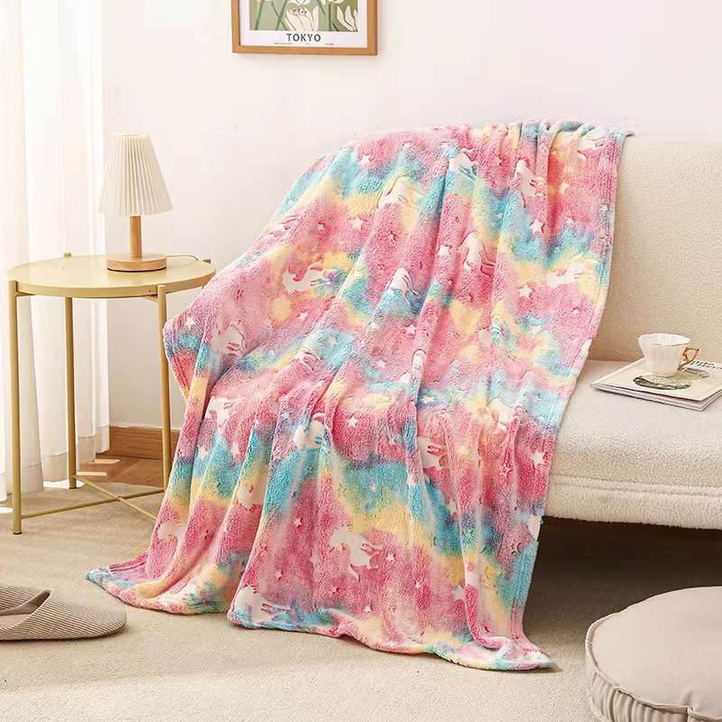 유니콘 발광 담요 플란넬 형광 어린이 에어컨 담요 사무실 소파 점심 시간 담요 도매