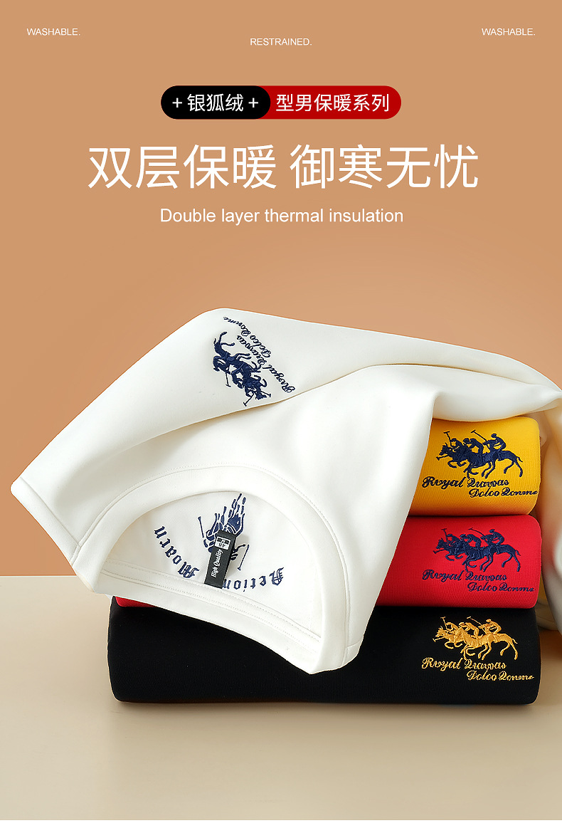 Pesson Dragon 겨울 기모 두꺼운 남성용 크루넥 스웨터 420g 실버 폭스 벨벳 따뜻한 남성베이스 티셔츠 탑