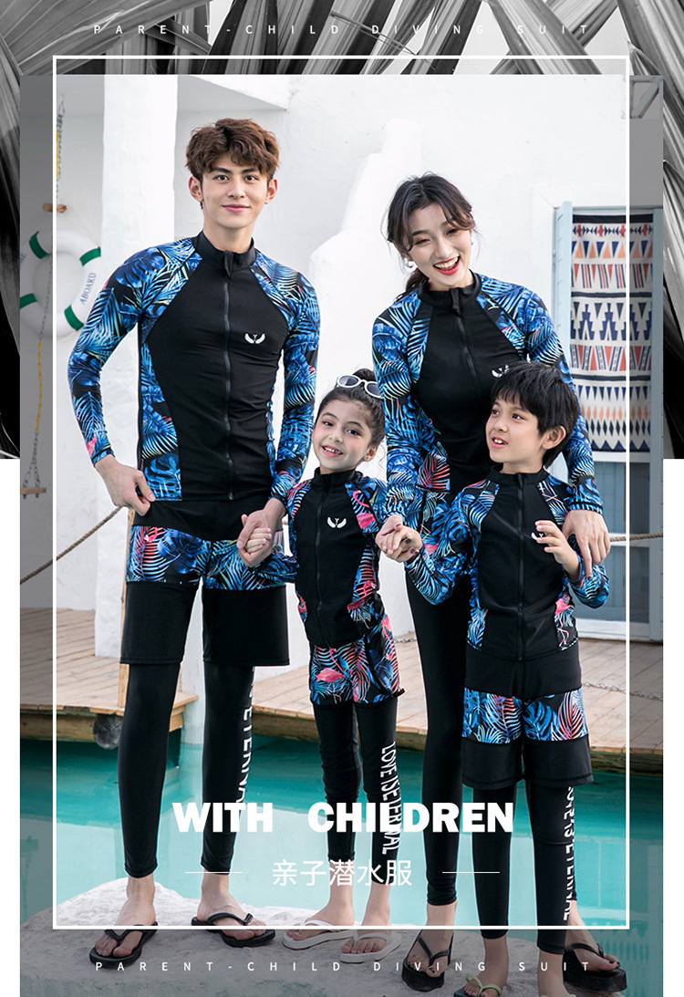 情侣泳衣亲子家庭套装长袖长裤分体防晒潜水服水母衣男女儿童泳装