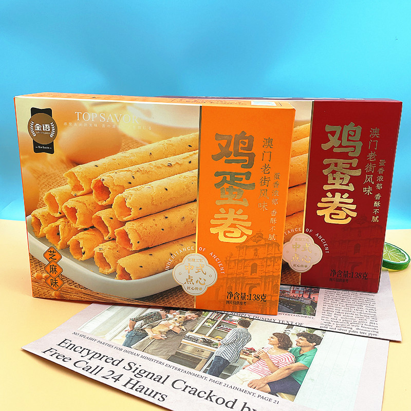 Jinyu 계란 롤 138g 박스 오리지널 구식 수제 계란 롤 비스킷 케이크 참깨 맛 간식 음식스토어 가기