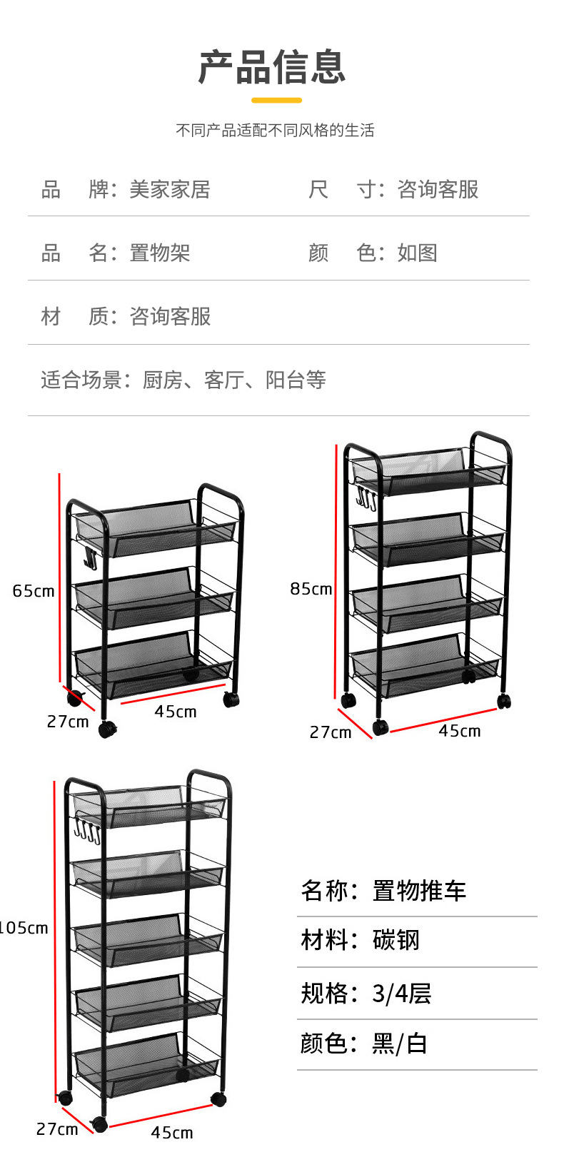 현대 간단한 다층 보관 선반 주방 욕실 마감 수납 롤러가있는 간단한 트롤리 보관 랙스토어 가기