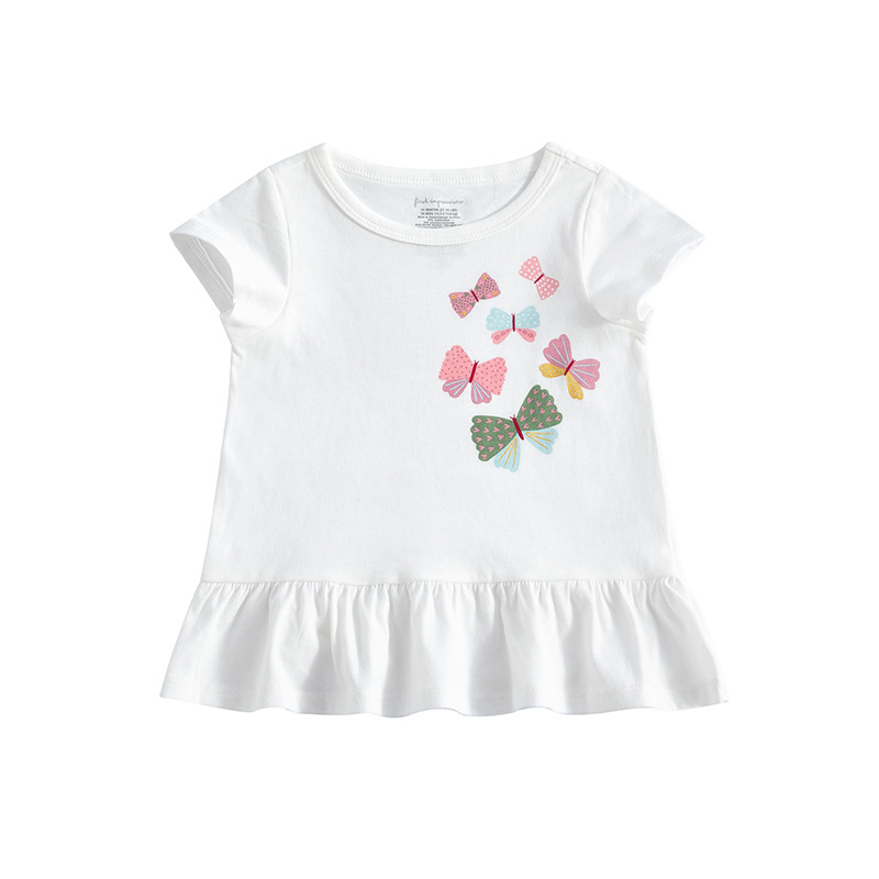 유럽과 미국의 아동복 123 세 나비 레이스 의류 아동용 반팔 바닥 셔츠 봄과 가을 얇은면 아기 소녀의 긴팔 티셔츠