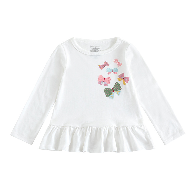유럽과 미국의 아동복 123 세 나비 레이스 의류 아동용 반팔 바닥 셔츠 봄과 가을 얇은면 아기 소녀의 긴팔 티셔츠스토어 가기
