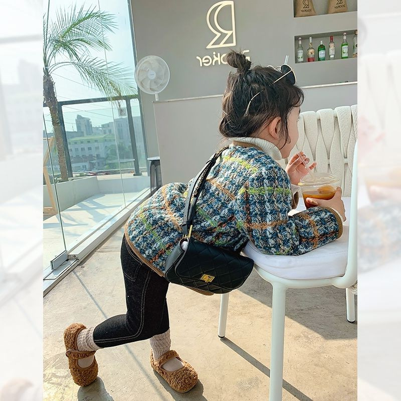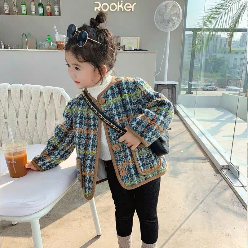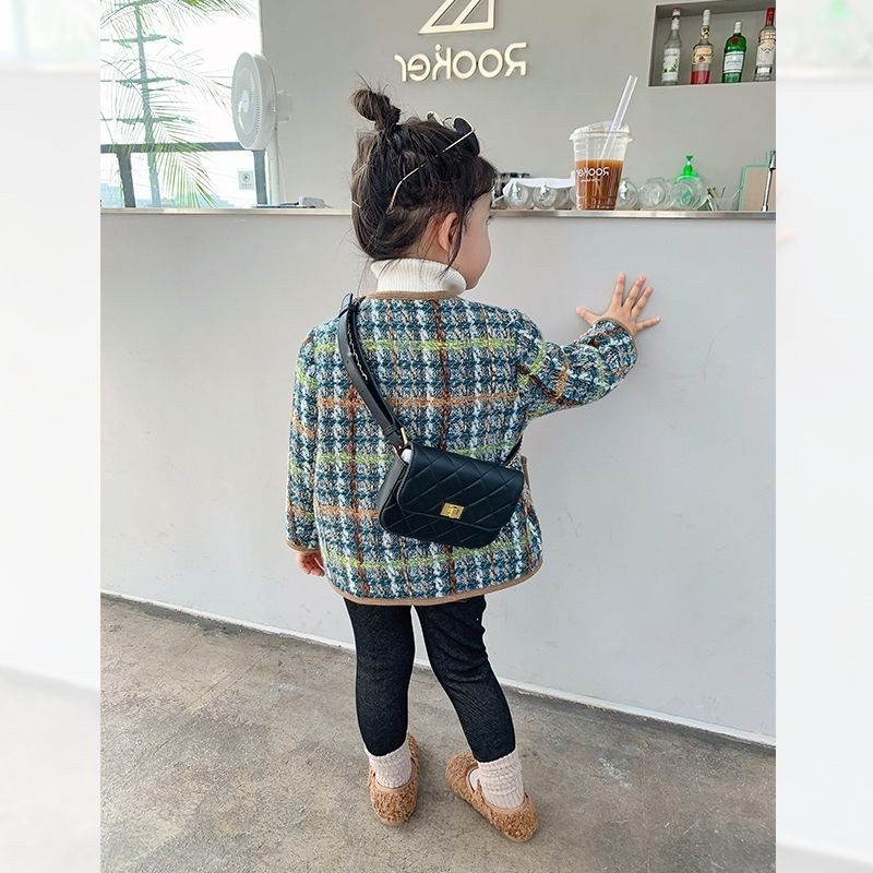 여아용 작은 향기로운 스타일의 누빔 보온 재킷 2025 가을 겨울 한국판 아동용 상의 유아용 세련된 체크무늬 재킷 트렌디