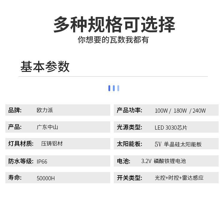 • 엔지니어링 모델: 180W(지능형 조명 제어 + 유도 + 시간 제어 + 어두울 때 자동 조명)