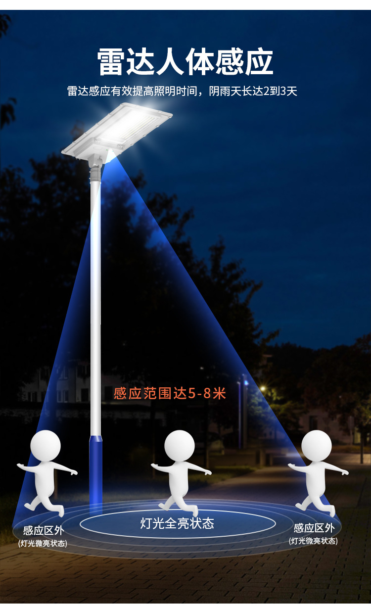 태양광 정원 조명 LED 엔지니어링 야외 벽 조명 방수 센서 태양광 통합 가로등 지능형 센서