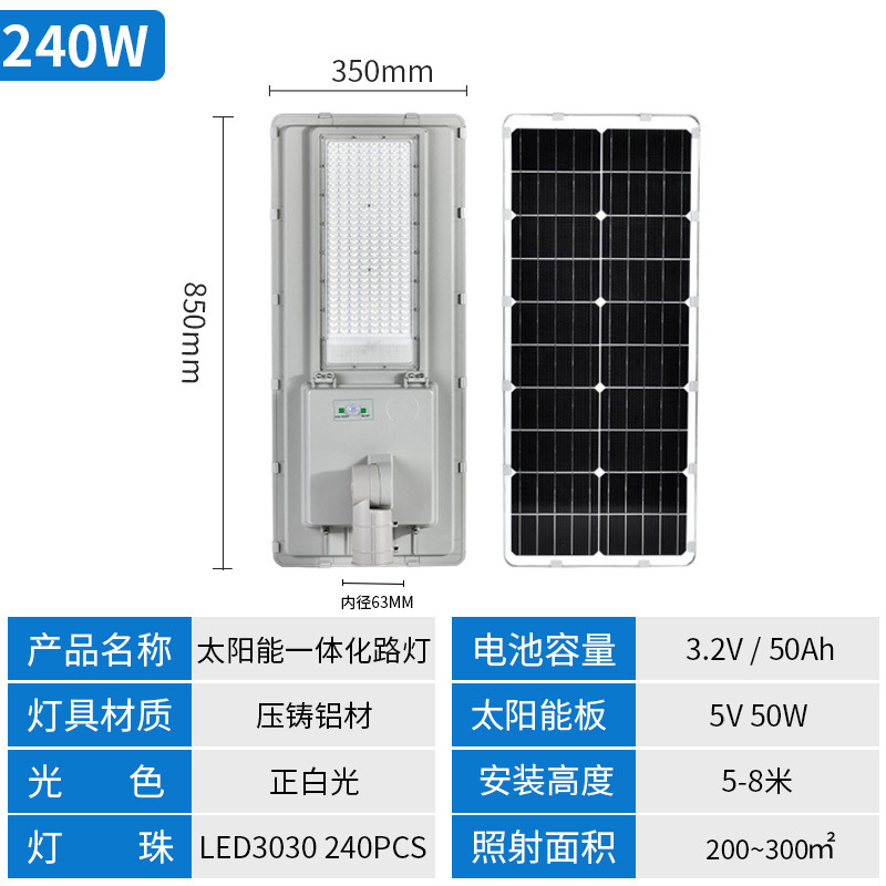 • 엔지니어링 모델: 240W(지능형 조명 제어 + 유도 + 시간 제어 + 어두울 때 자동 조명)