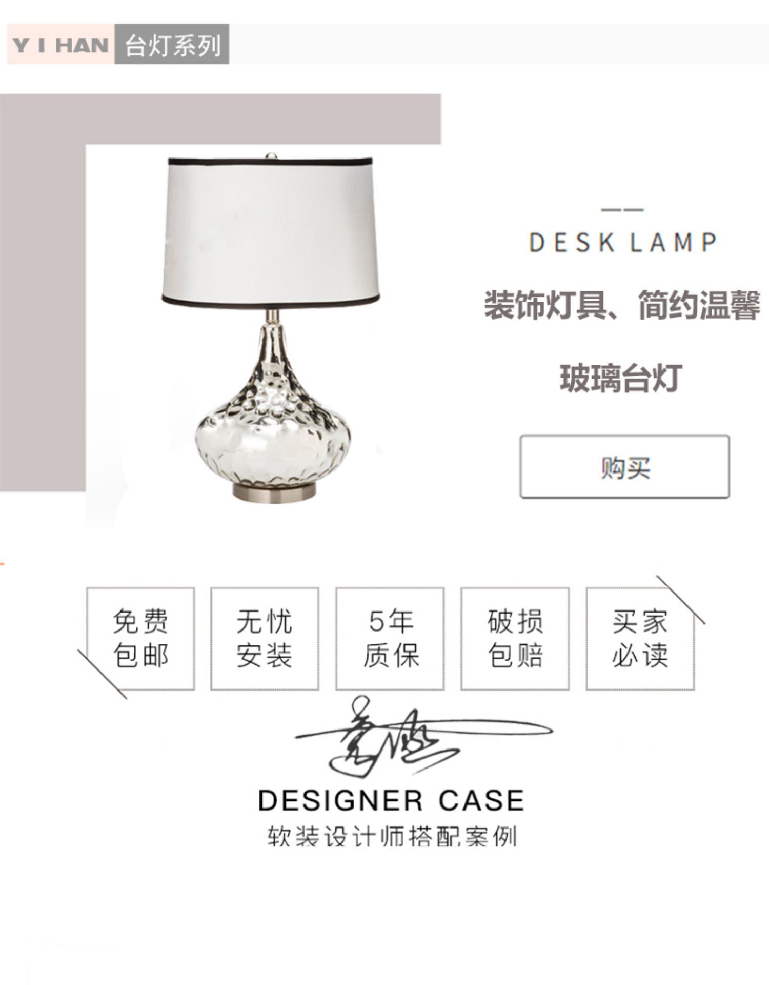 현대 간단한 전기 도금 실버 유리 테이블 램프 미국 국가 모델 룸 북유럽 거실 침실 침대 옆 따뜻한 장식스토어 가기