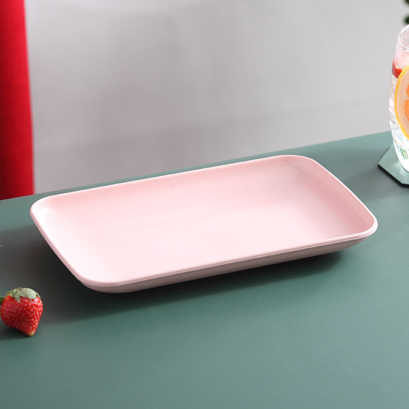 밀짚 직사각형 접시 냄비 바베큐 플라스틱 쌀 창자 분말 접시 가정용 간단한 접시 로고 인쇄 과일 접시스토어 가기
