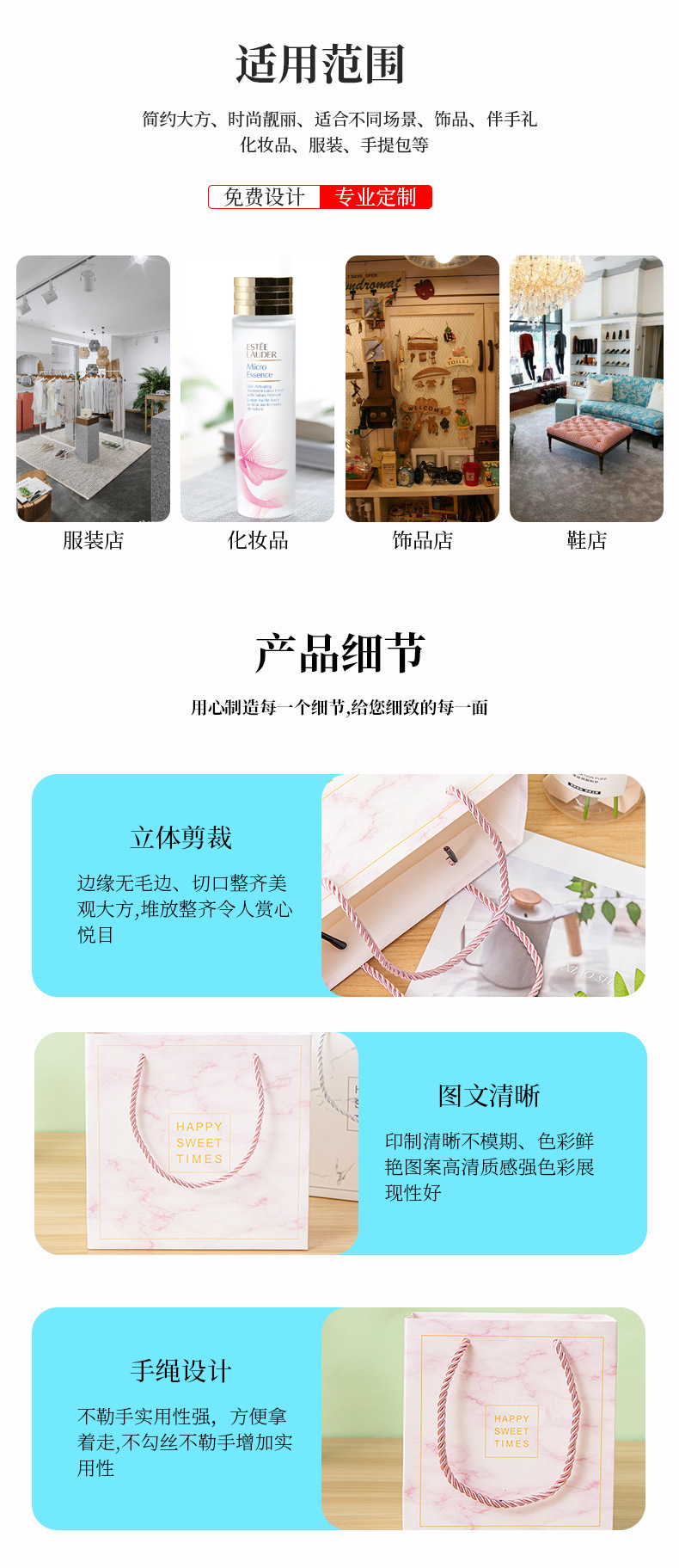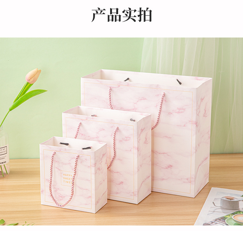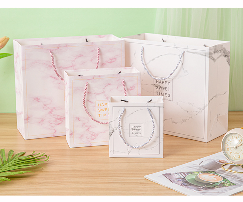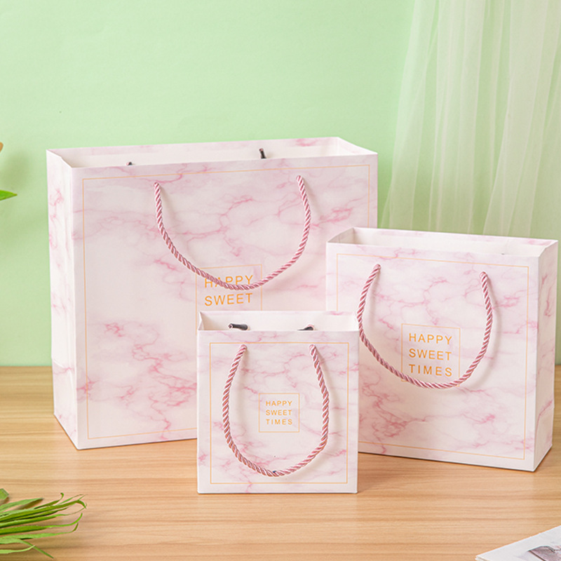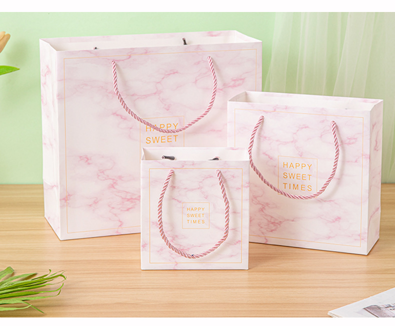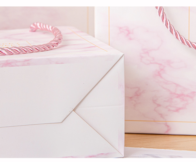 대리석 무늬 핑크색 선물 가방, 의류 매장용 대형 핸드백, 고급 화장품 및 보석 포장 가방, 답례 선물 가방스토어 가기