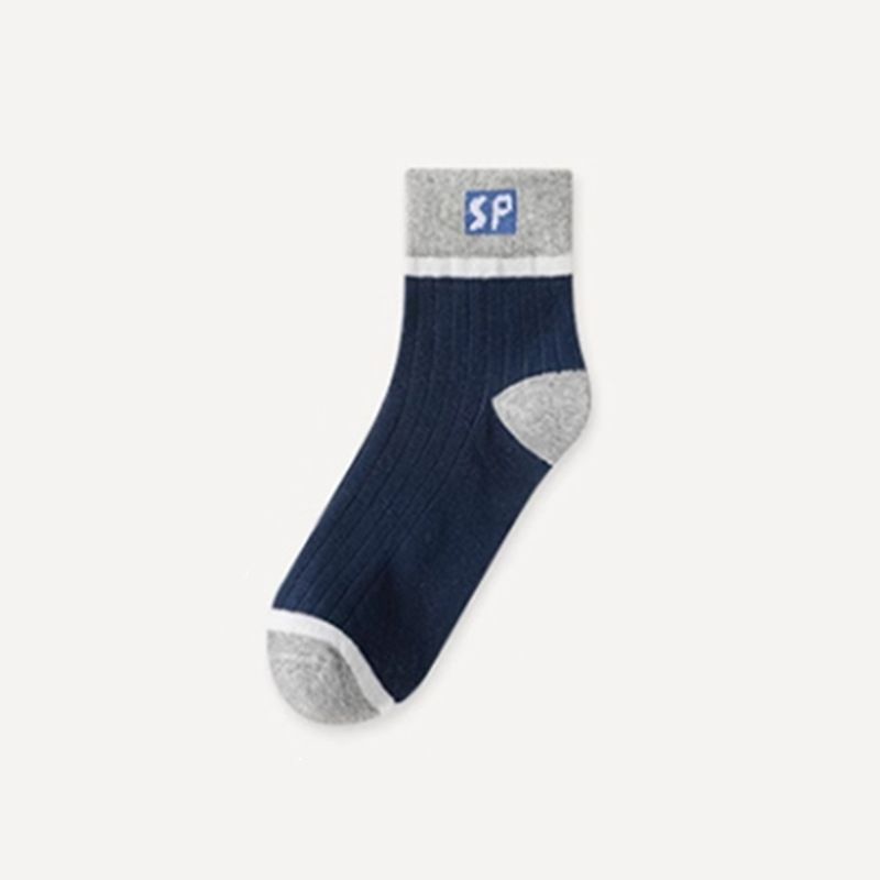 • 남성 SP 흑백 그레이 미드 종아리 양말-네이비-B