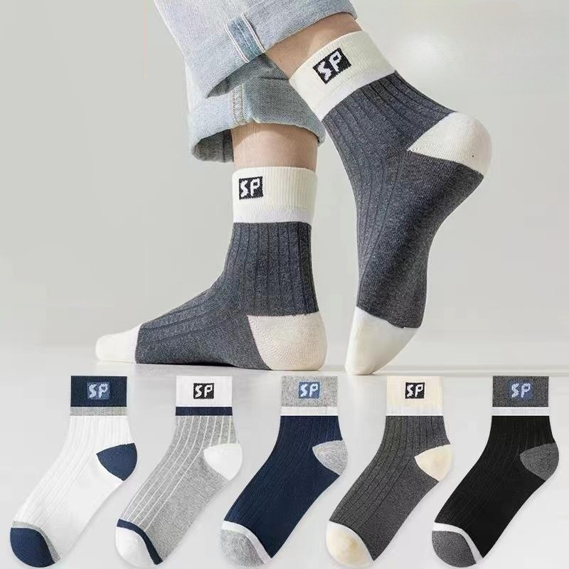 양말 남성용 미드 튜브 양말 새로운 SP 남성 양말 통기성 땀 흡수 스타킹 간단한 단색 그리기 남성 양말 Zhuji