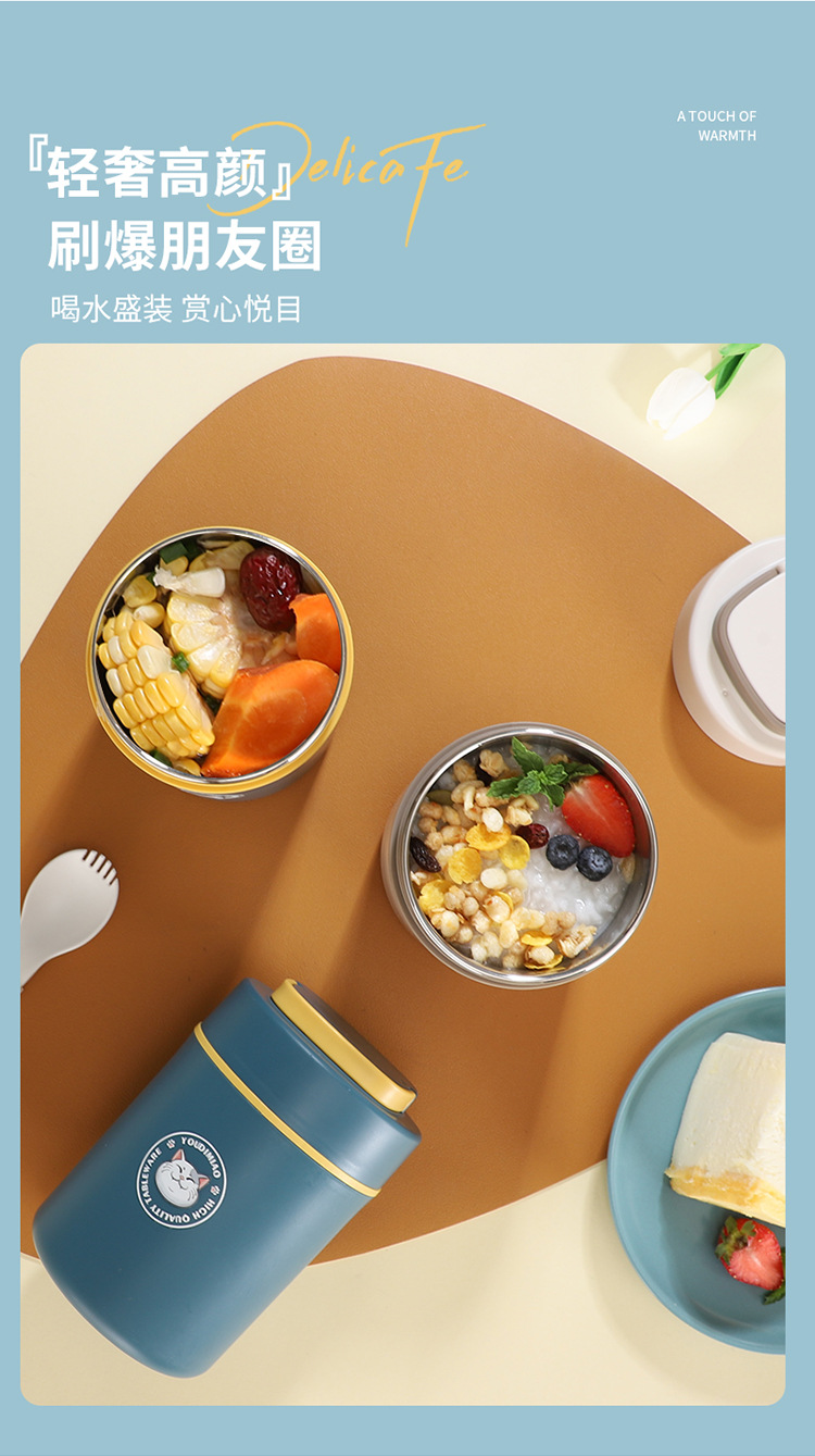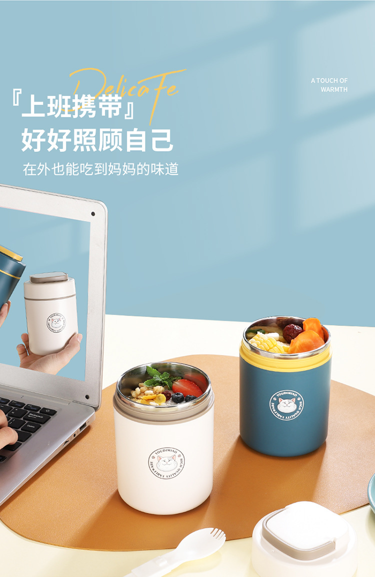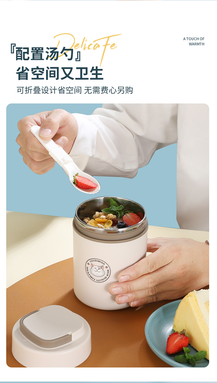 공장 직공급 304 스테인레스 아침 식사 컵 직장인 단열 스프 컵 편리한 우유 밀폐 스프 컵 선물스토어 가기