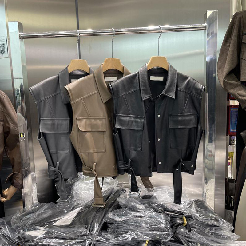 여자 한국 스타일 PU 가죽 조끼 2025 가을 새로운 짧은 느슨한 스탠드 업 칼라 조끼 허리 조끼 재킷스토어 가기