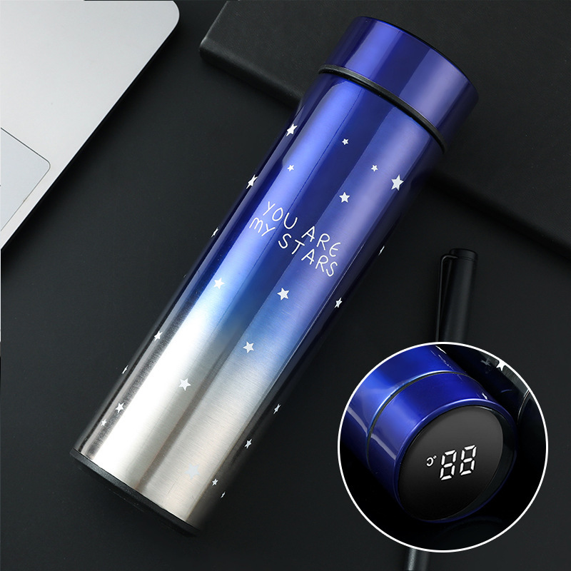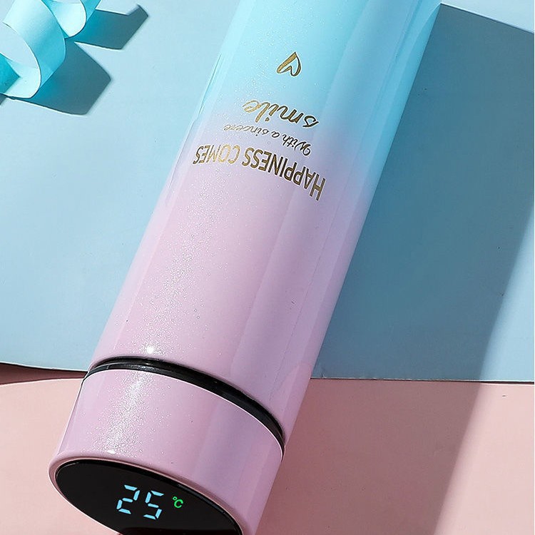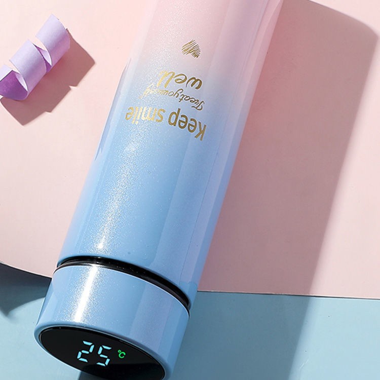 그라데이션 보온병 컵 지능형 온도 물 컵 304 스테인레스 스틸 크리에이티브 온도 측정 컵 선물 스트레이트 컵 새겨진 로고