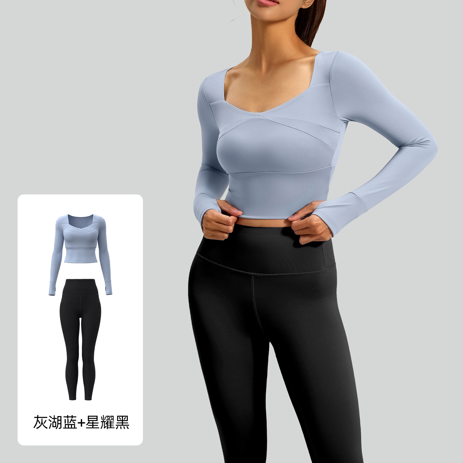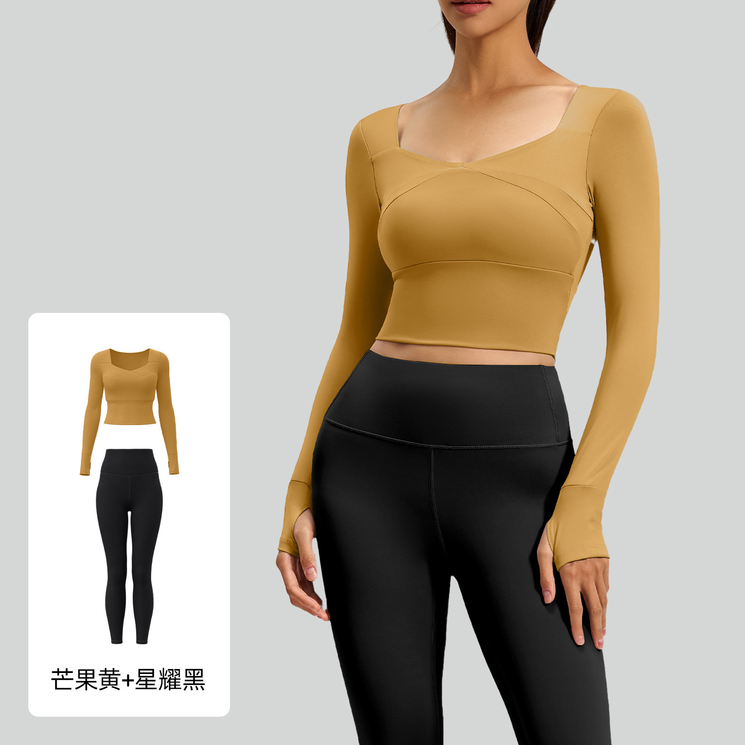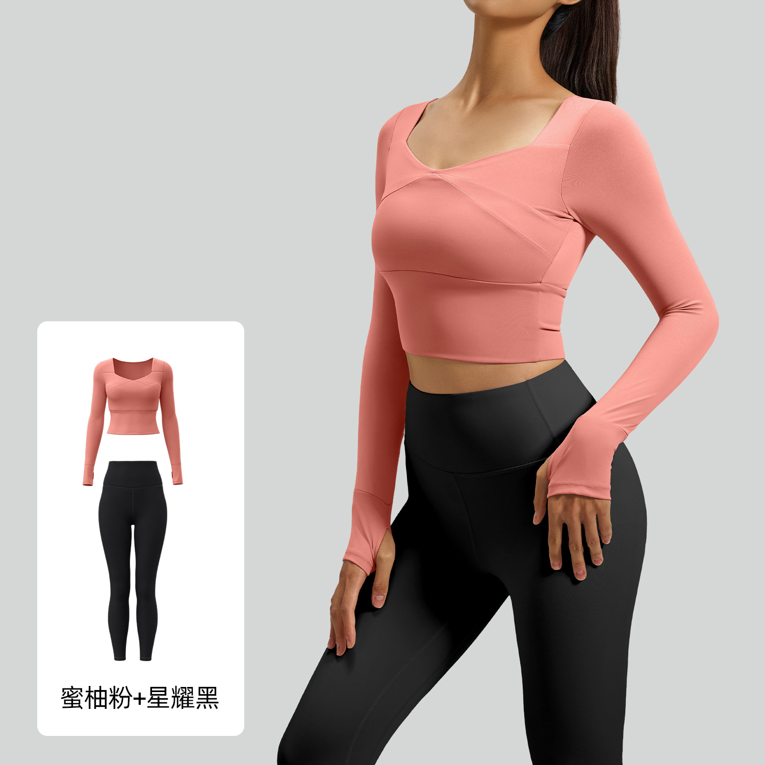 주이탕 스플라이스 요가 긴팔 세트, 노와이어 스포츠웨어, 누드감 요가복