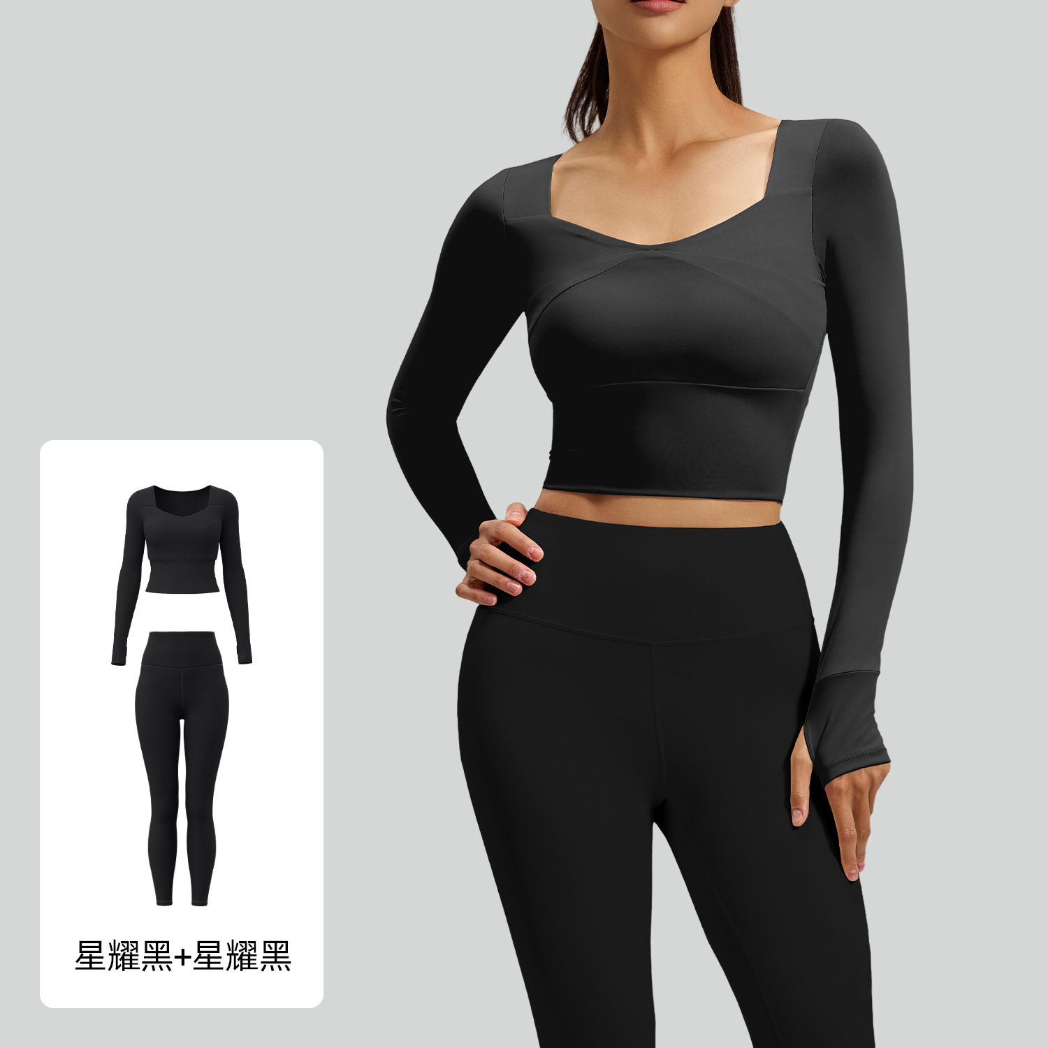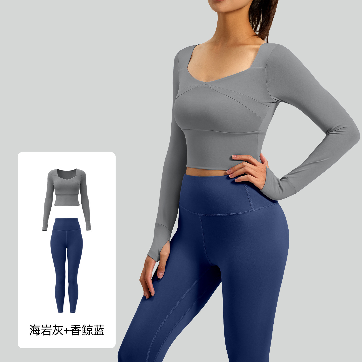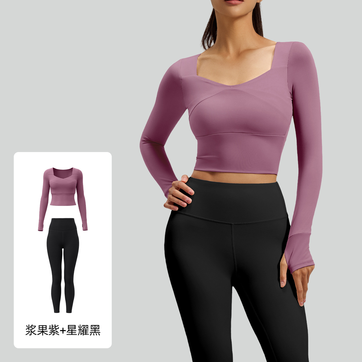 주이탕 스플라이스 요가 긴팔 세트, 노와이어 스포츠웨어, 누드감 요가복