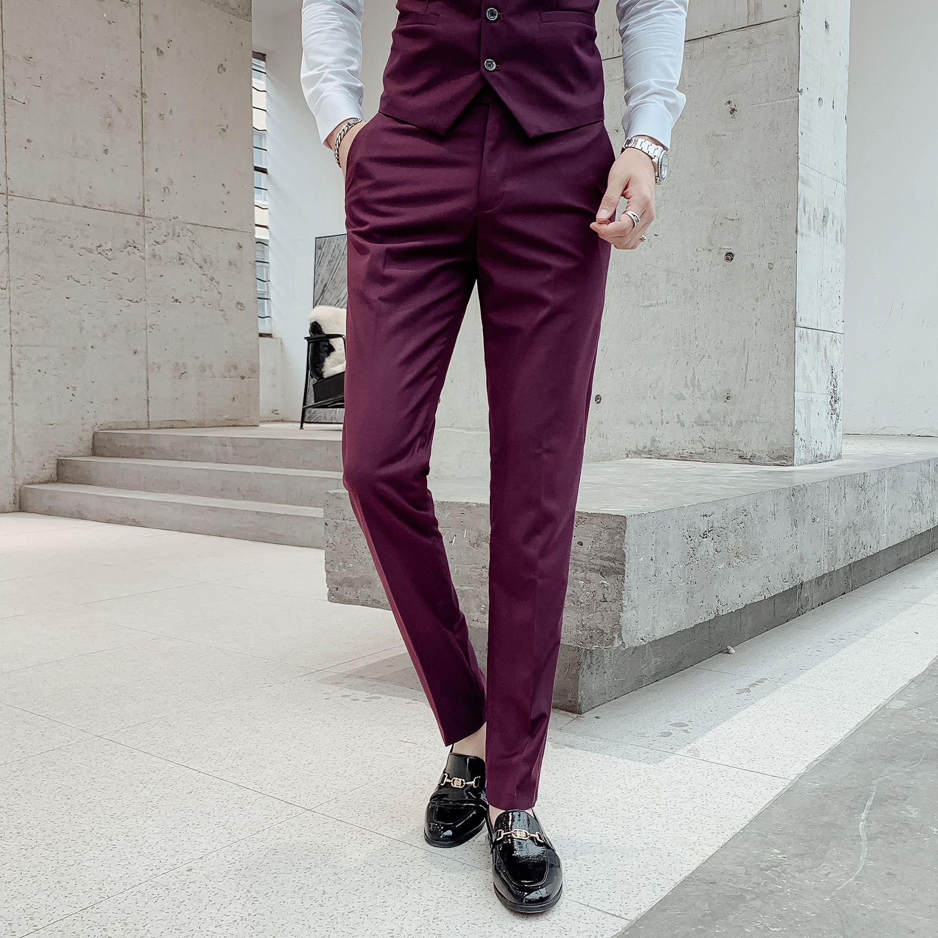 • 버건디 바지