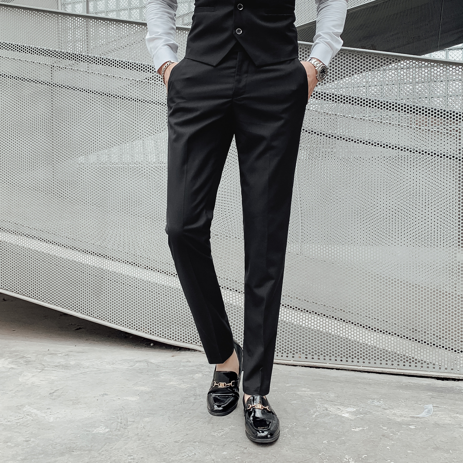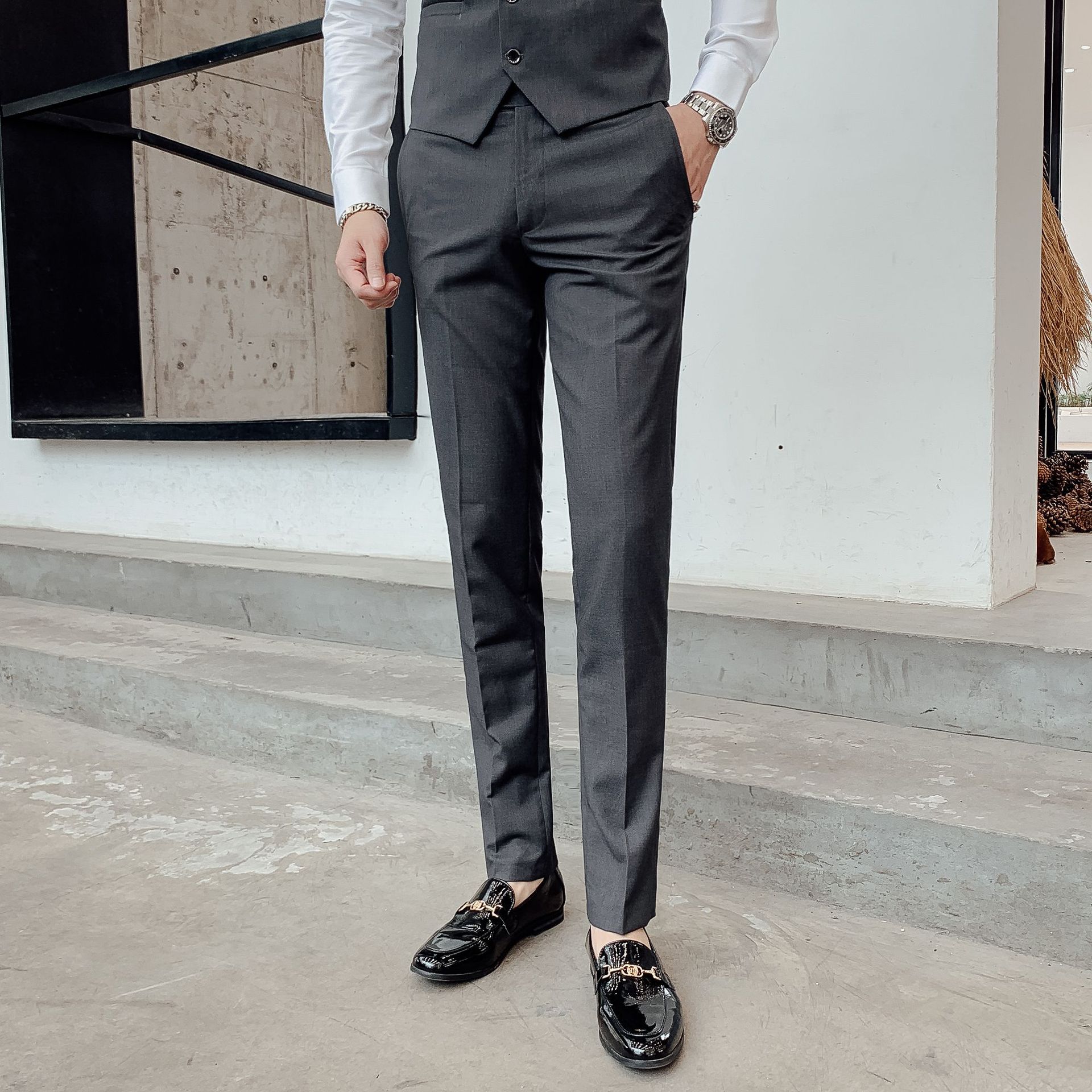 세트 남자 싱글 웨스턴 + 양복 조끼 + 바지 + 셔츠를 분리 할 수 있습니다 한국의 슬림 핏 플러스 사이즈 최고의 남자 원피스스토어 가기