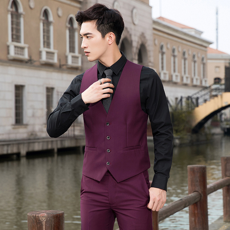 세트 남자 싱글 웨스턴 + 양복 조끼 + 바지 + 셔츠를 분리 할 수 있습니다 한국의 슬림 핏 플러스 사이즈 최고의 남자 원피스
