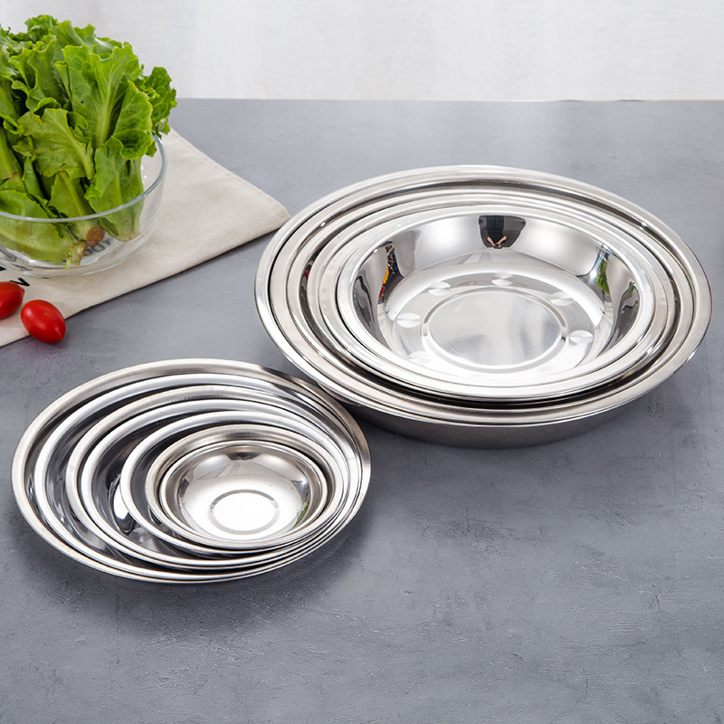 304 플레이트 스테인레스 스틸 플레이트 라운드 바베큐 플레이트 두꺼운 깊은 플레이트 얕은 플레이트 스테인레스 스틸 접시 라운드 플레이트스토어 가기