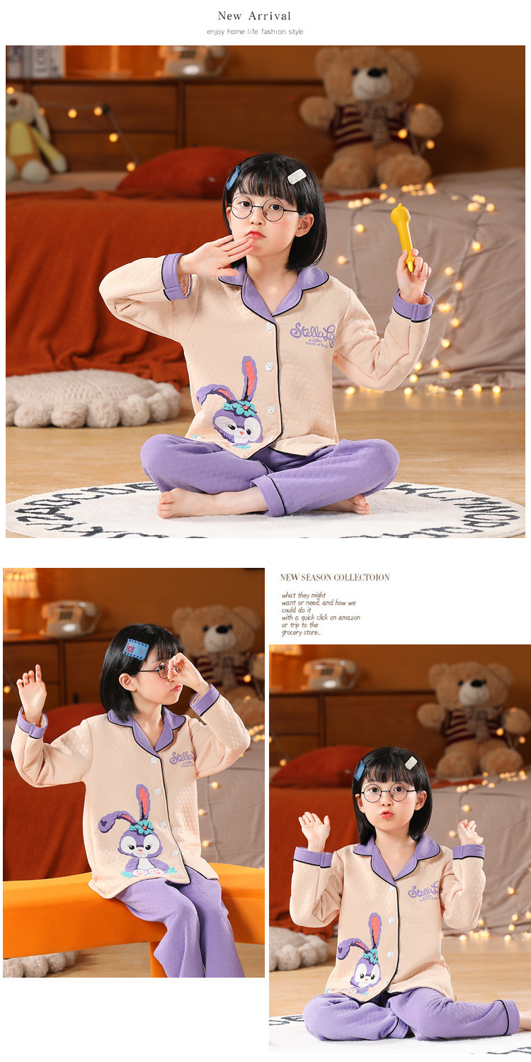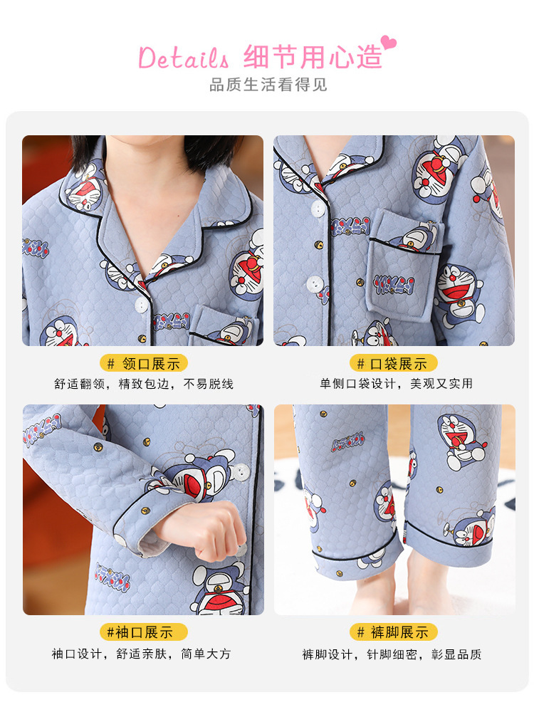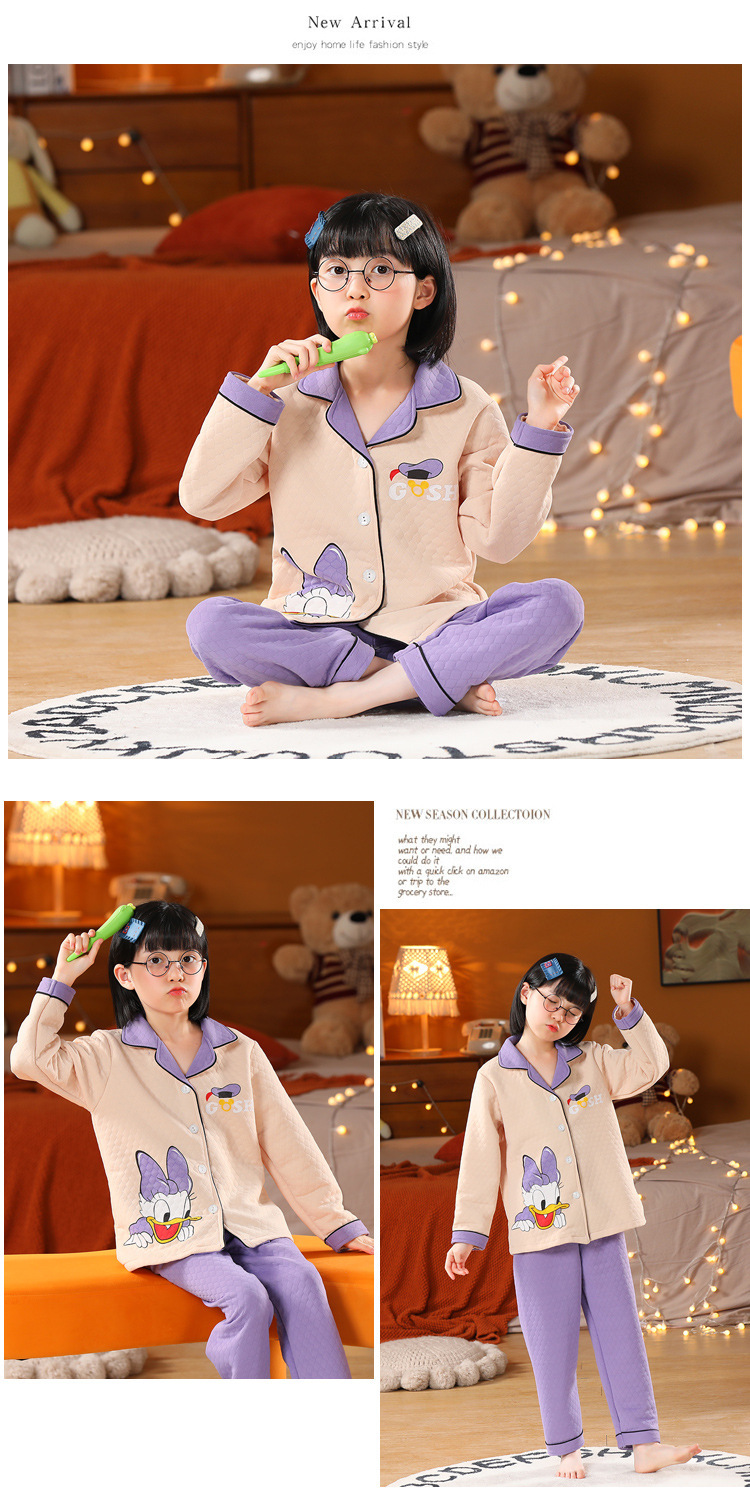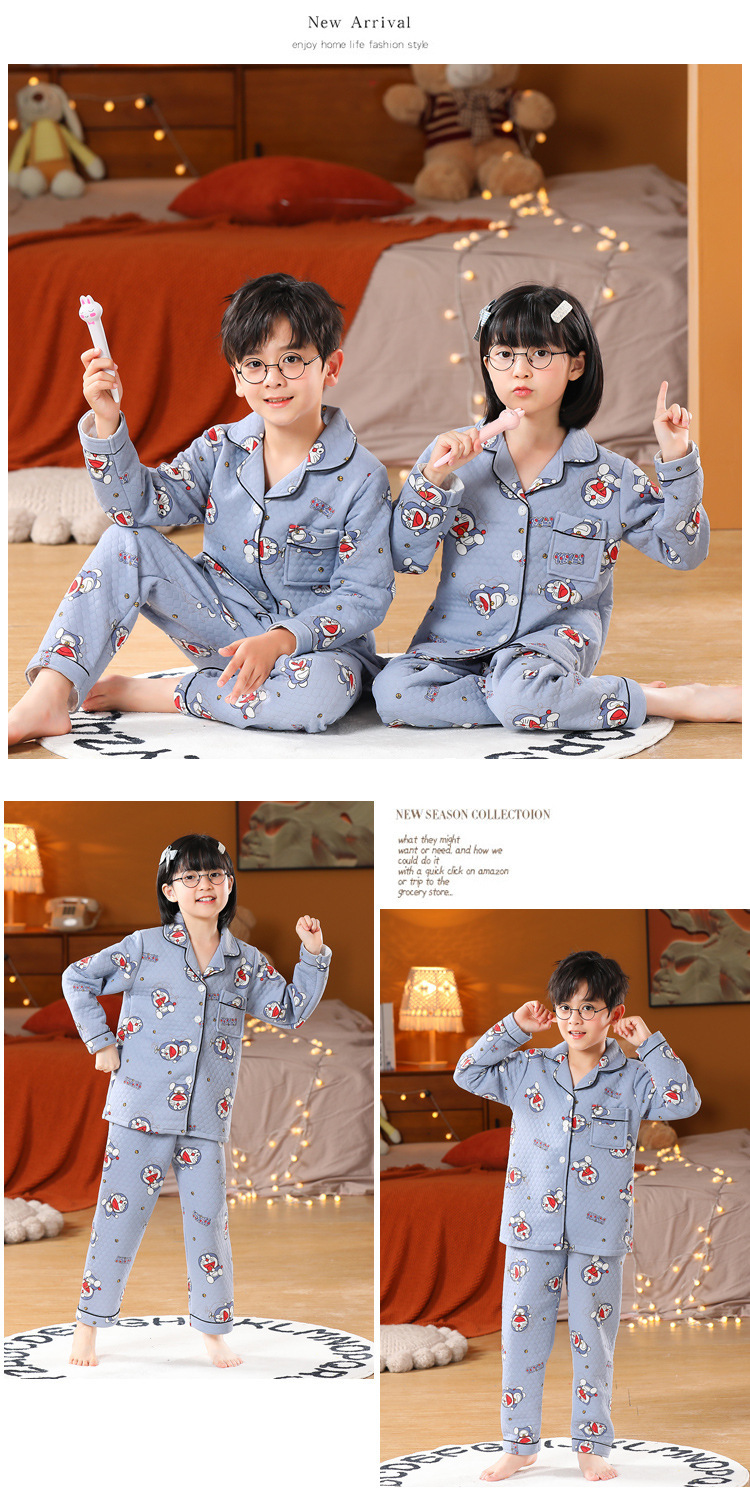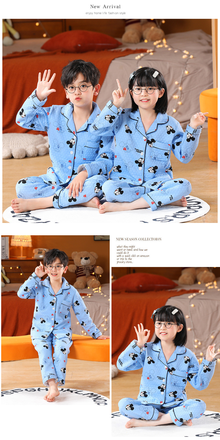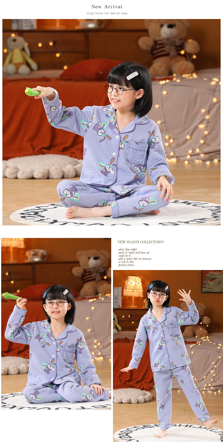 어린이 잠옷 가을과 겨울 새 여자 잠옷 남학생 따뜻한 옷 세트 중대형 어린이 퀼팅 두꺼운 가을 옷 긴 바지스토어 가기