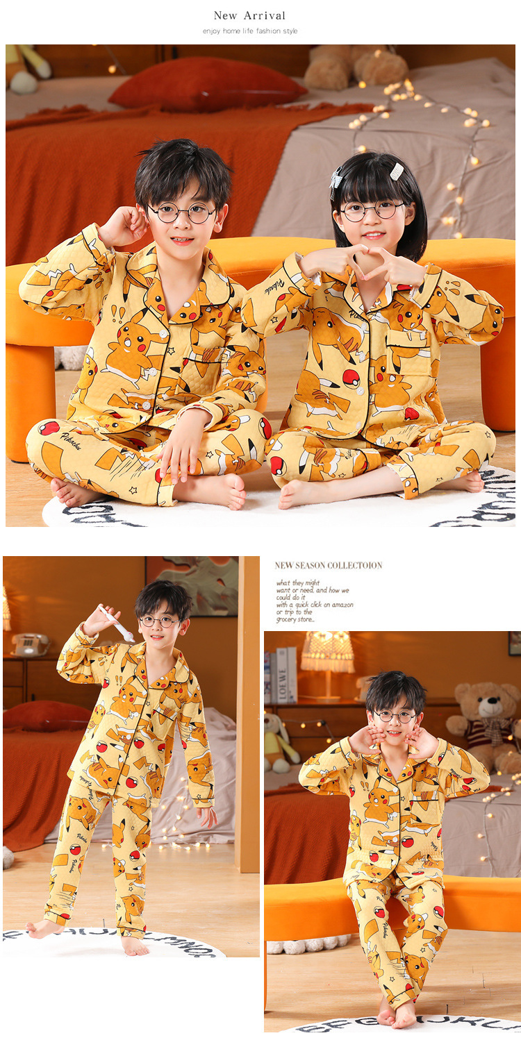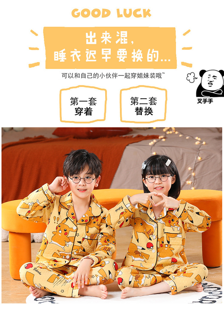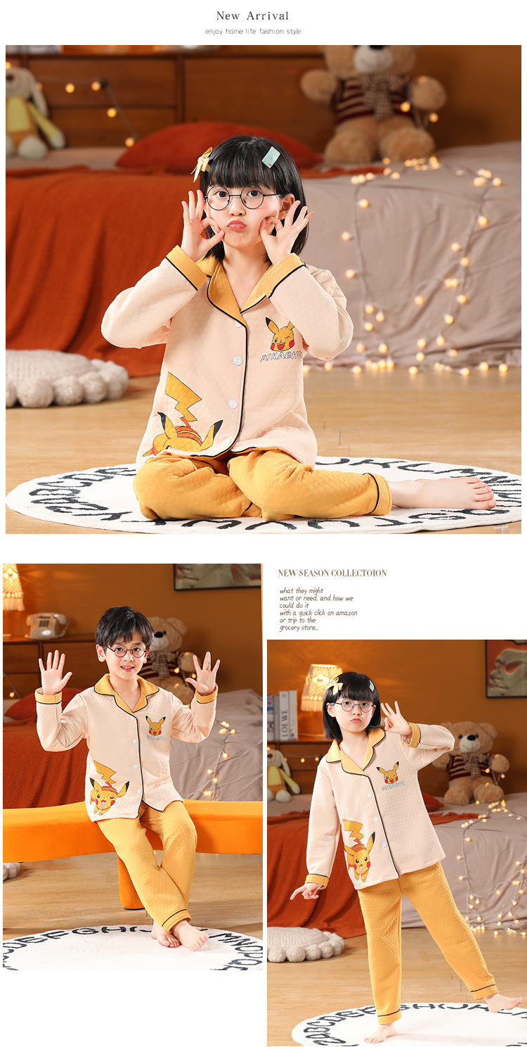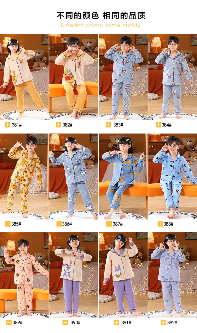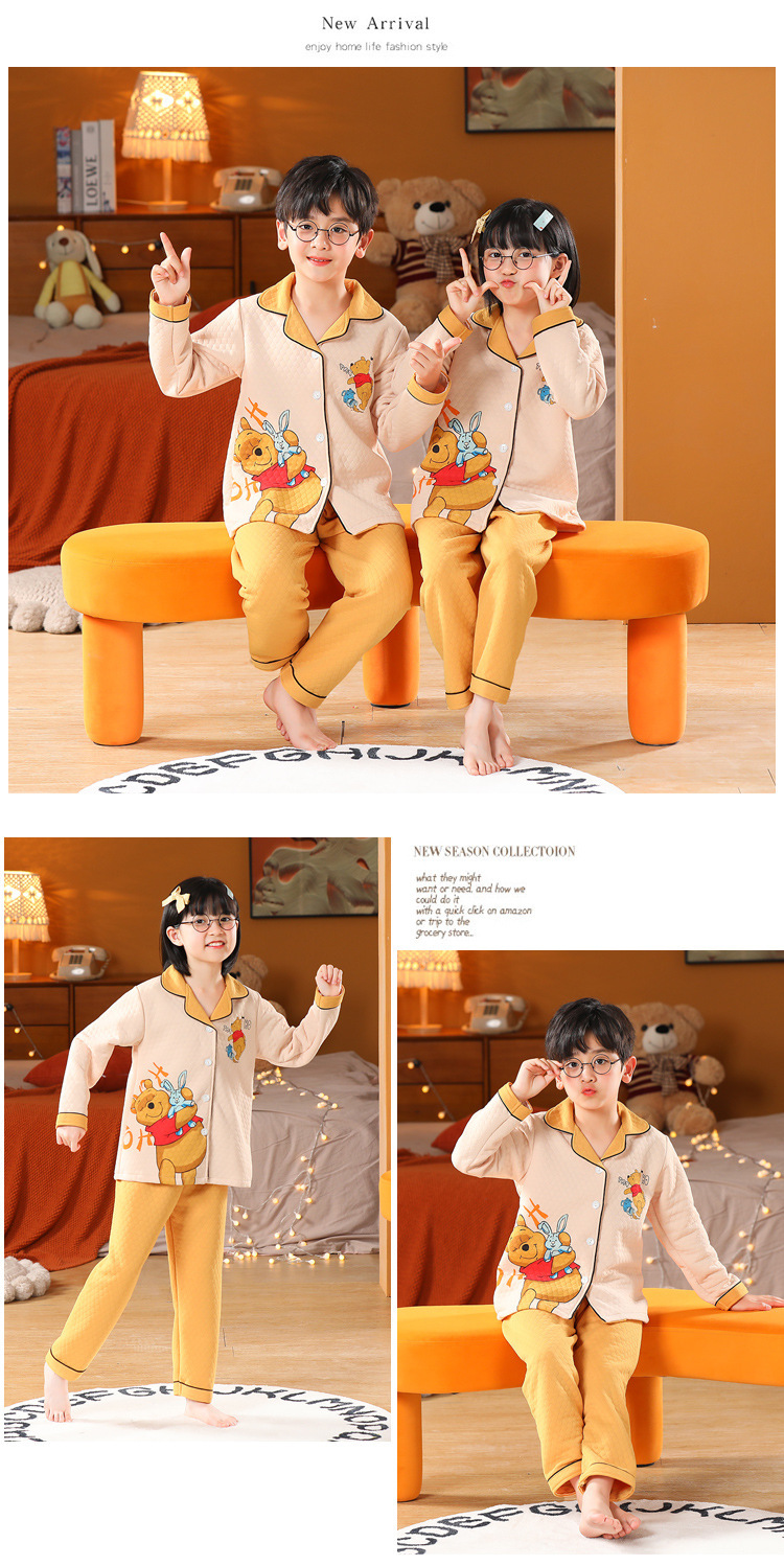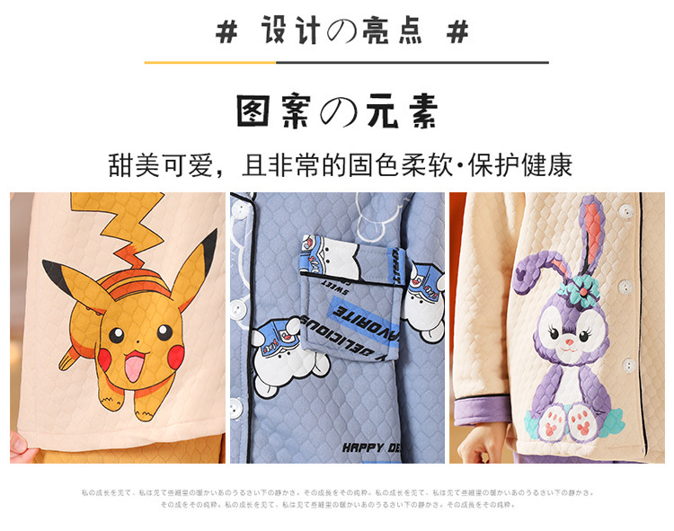 어린이 잠옷 가을과 겨울 새 여자 잠옷 남학생 따뜻한 옷 세트 중대형 어린이 퀼팅 두꺼운 가을 옷 긴 바지스토어 가기