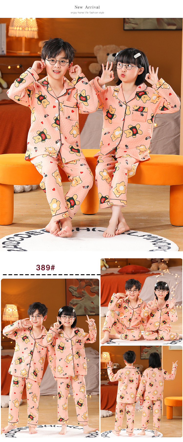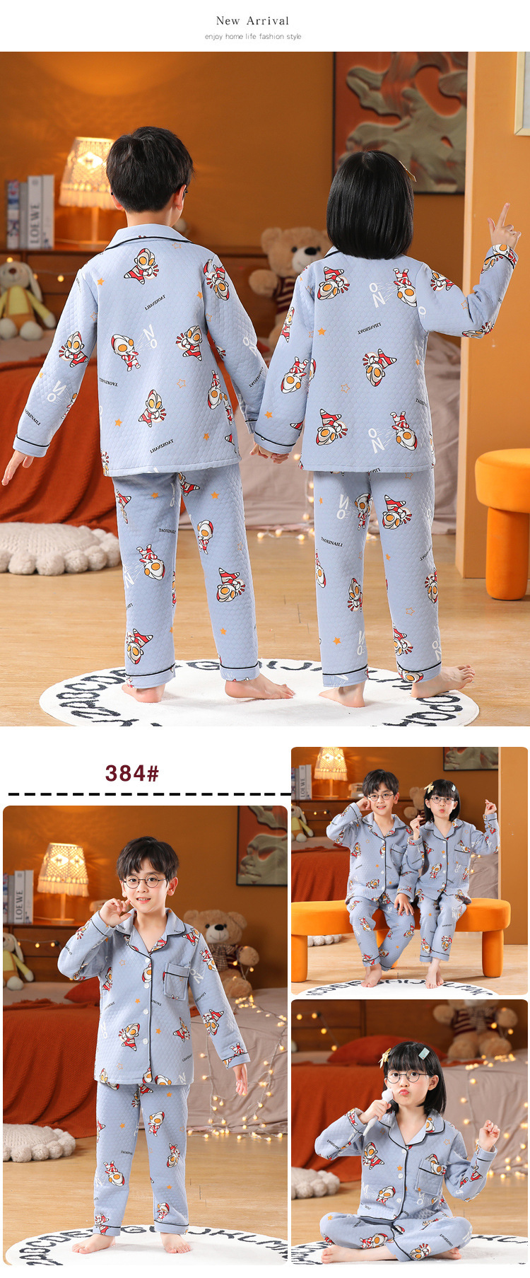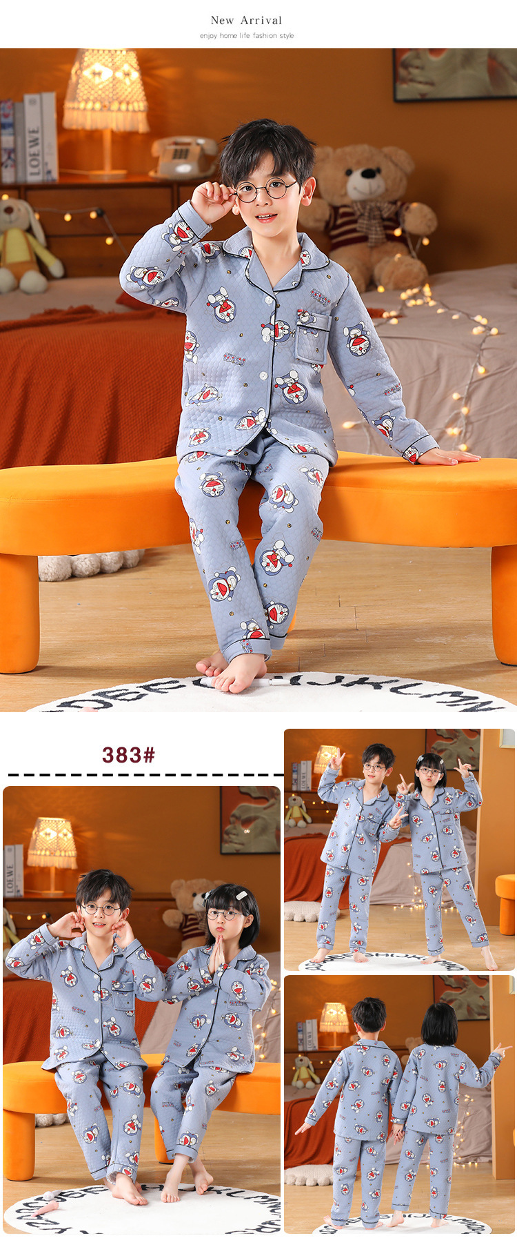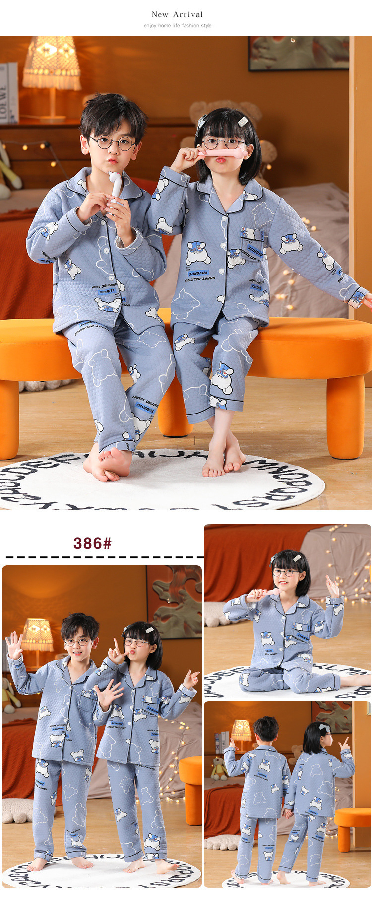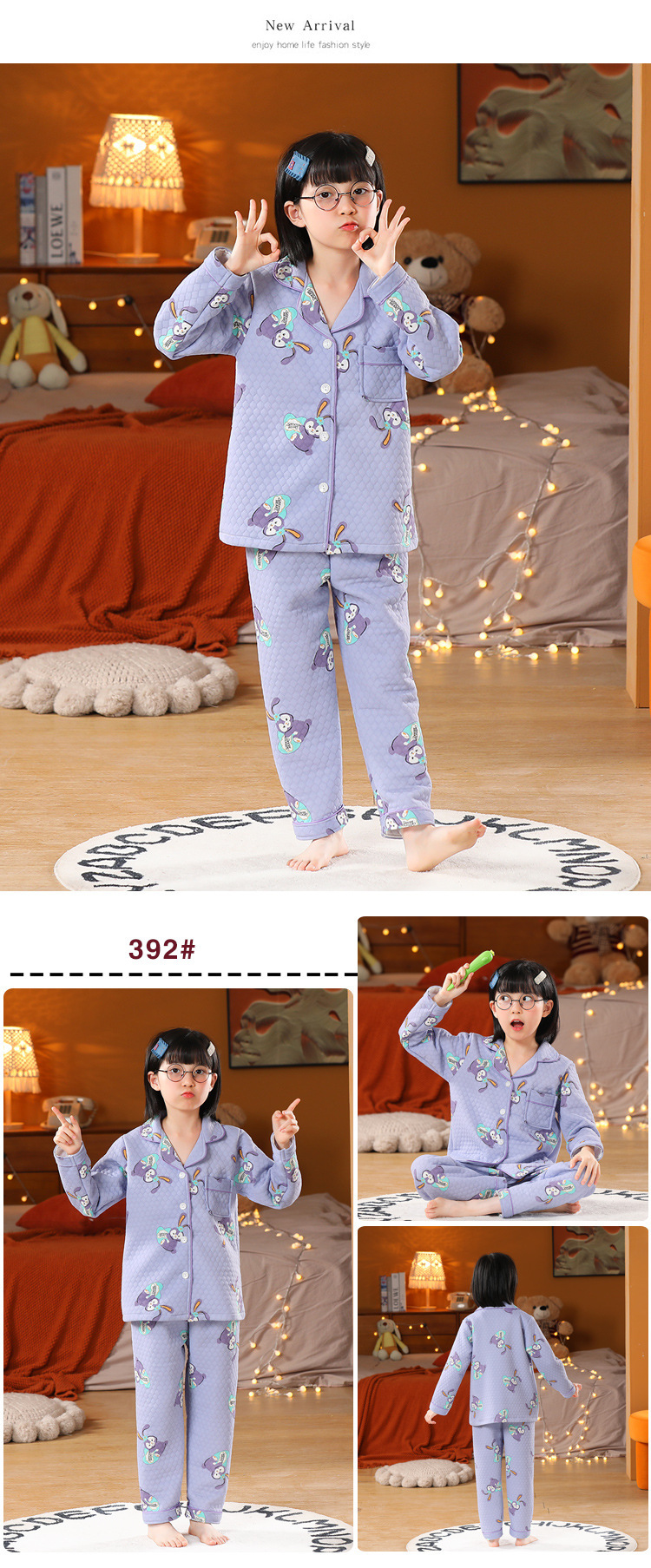 어린이 잠옷 가을과 겨울 새 여자 잠옷 남학생 따뜻한 옷 세트 중대형 어린이 퀼팅 두꺼운 가을 옷 긴 바지스토어 가기