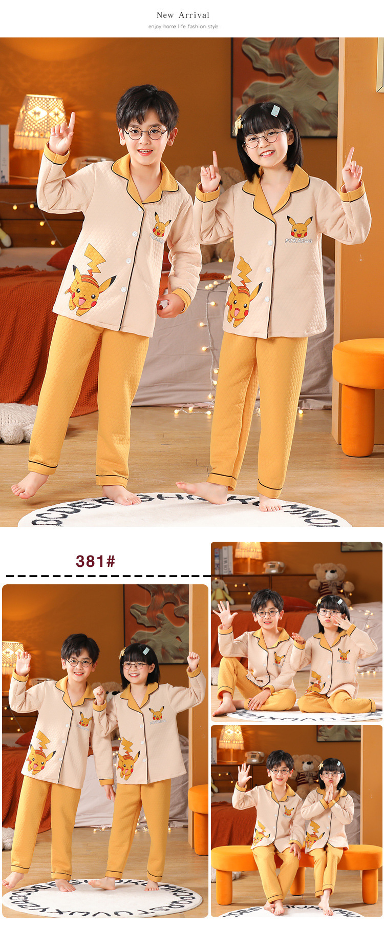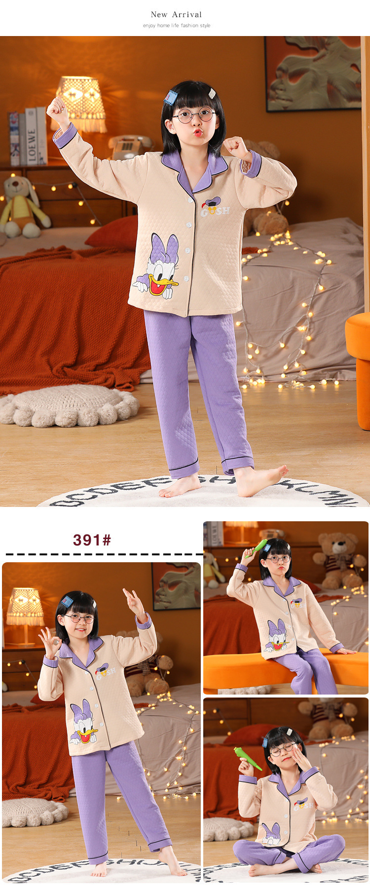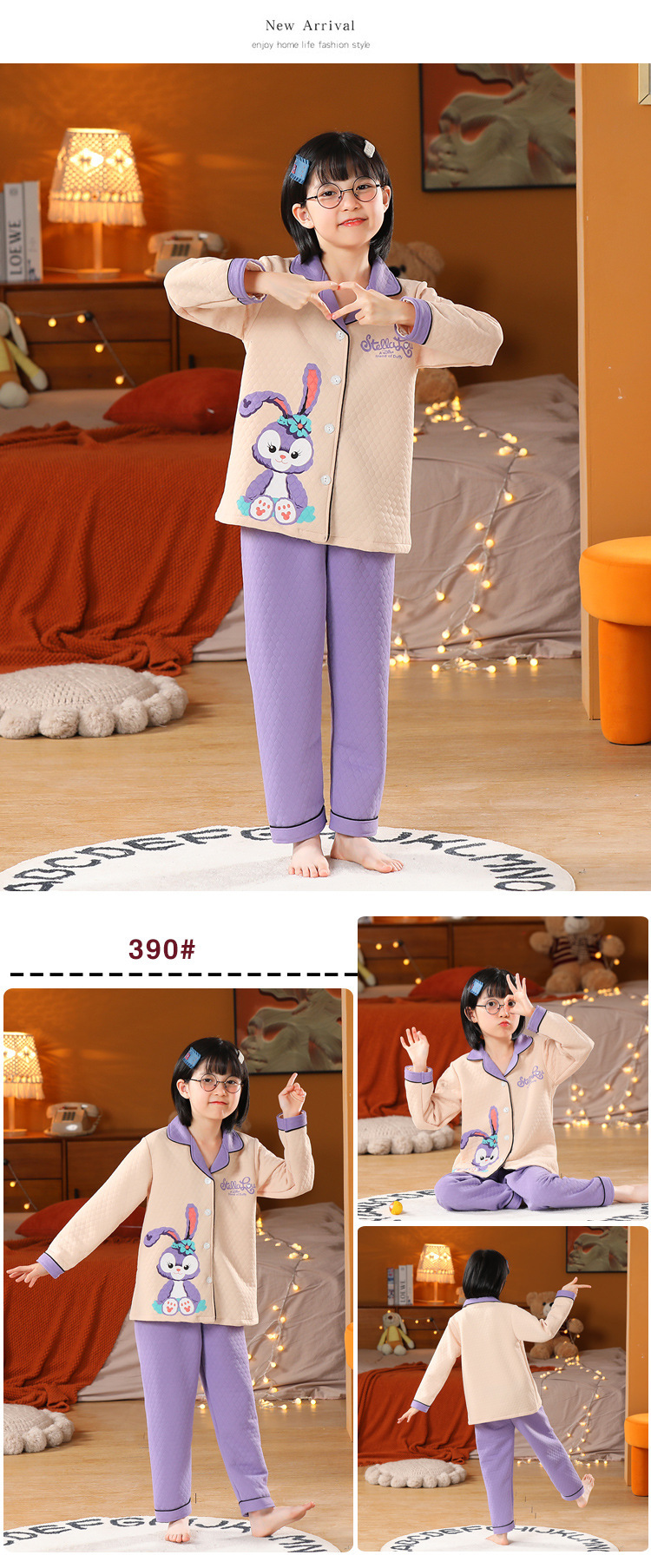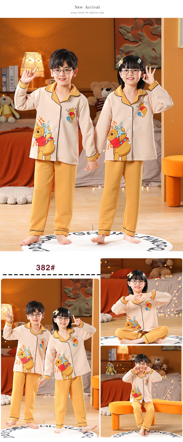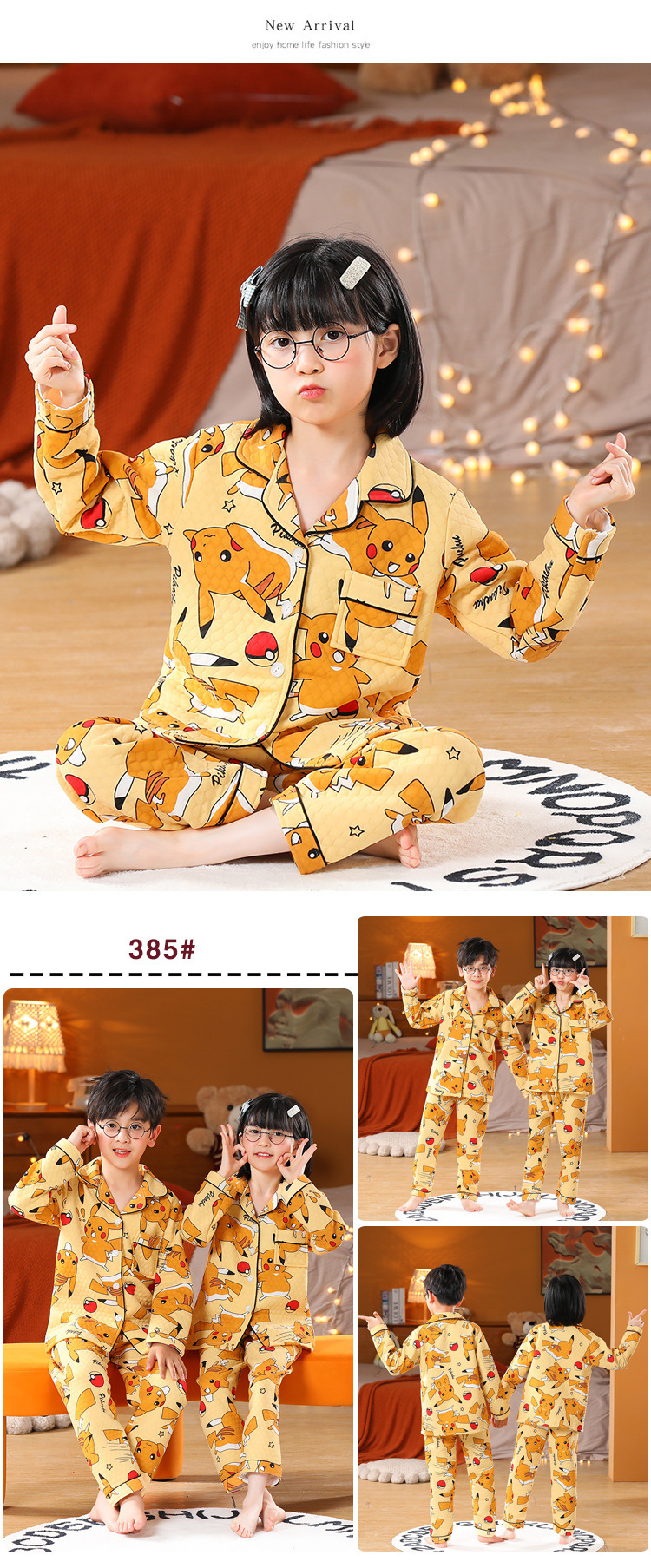 어린이 잠옷 가을과 겨울 새 여자 잠옷 남학생 따뜻한 옷 세트 중대형 어린이 퀼팅 두꺼운 가을 옷 긴 바지스토어 가기