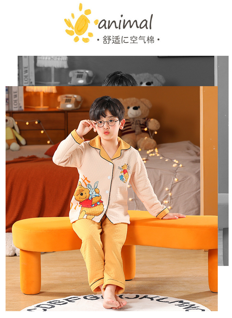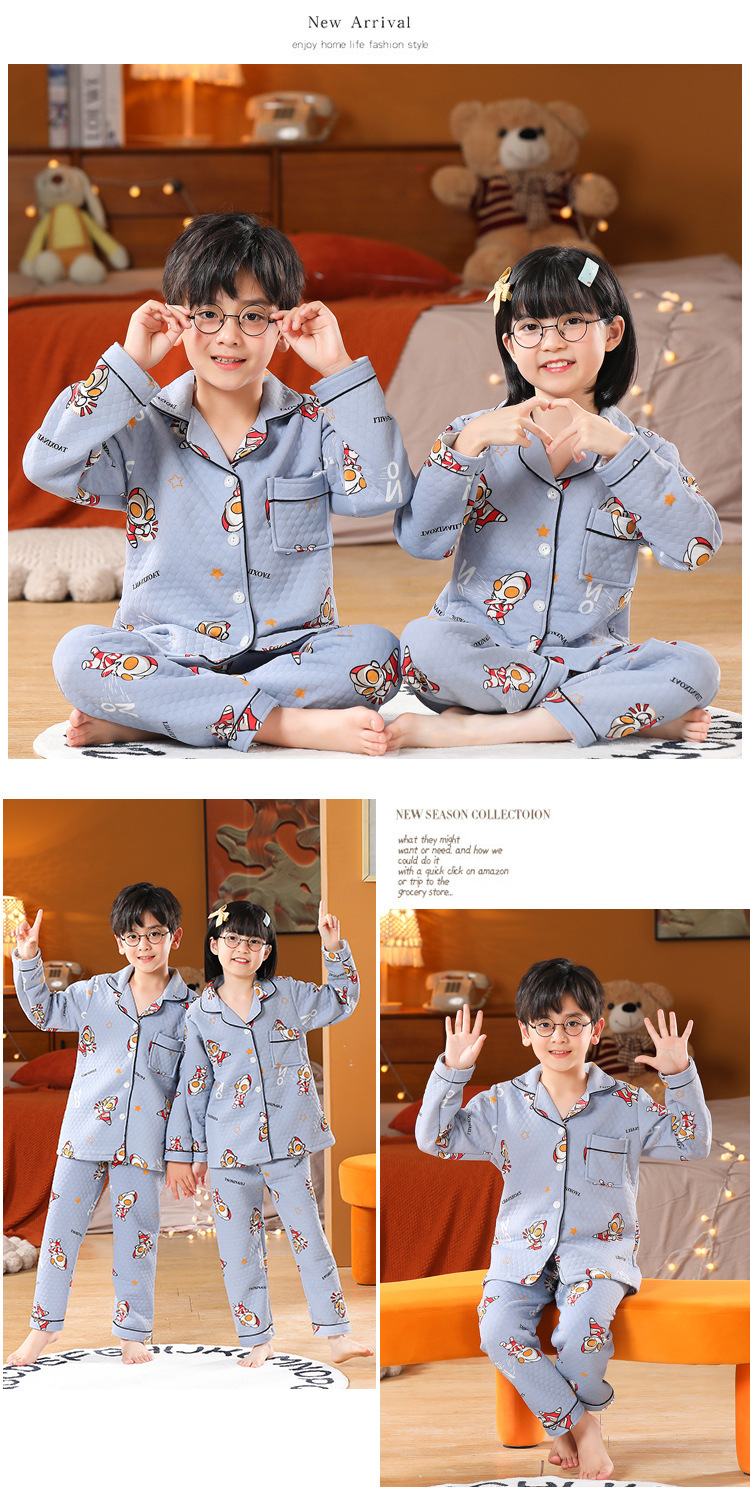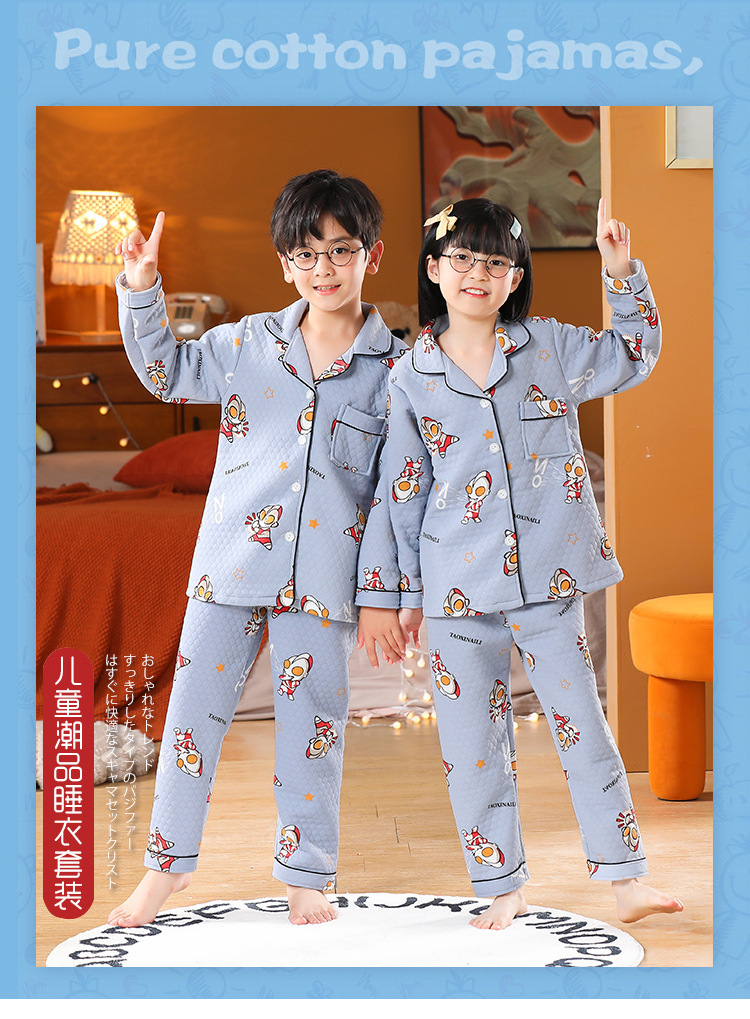 어린이 잠옷 가을과 겨울 새 여자 잠옷 남학생 따뜻한 옷 세트 중대형 어린이 퀼팅 두꺼운 가을 옷 긴 바지