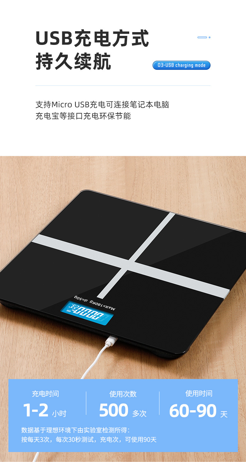 스마트 홈 체중계 기숙사 피트니스 고정밀 인체 저울 충전식 배터리 전자 저울 체중계 도매스토어 가기