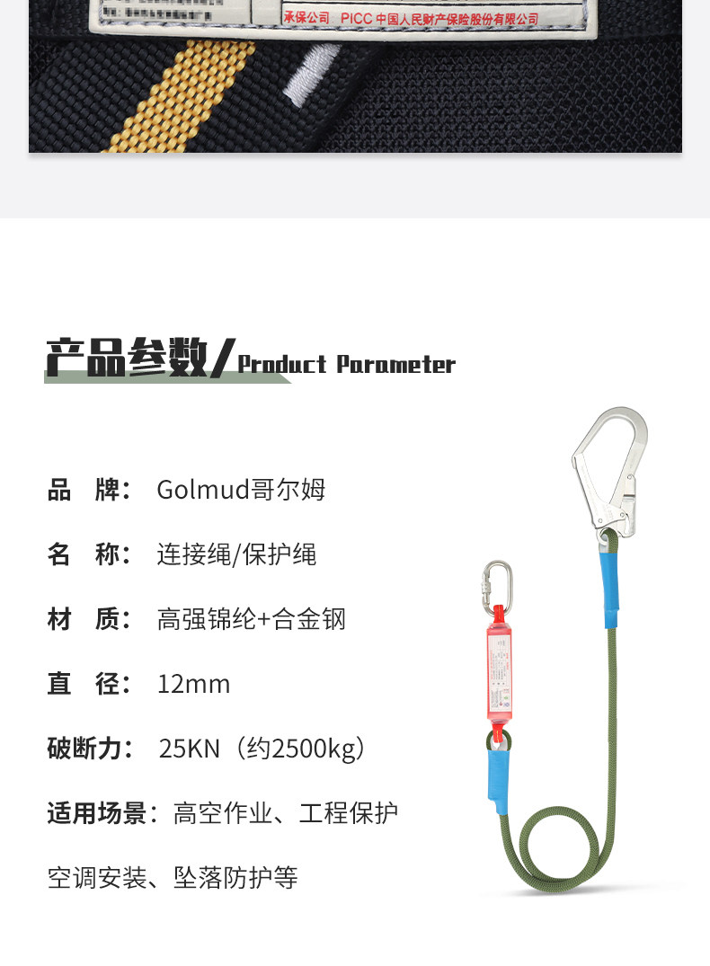 Golmud 풍력 발전 안전 벨트 전신 공중 작업 5 점 안전 벨트 낙하 방지 안전 로프 GM8215스토어 가기