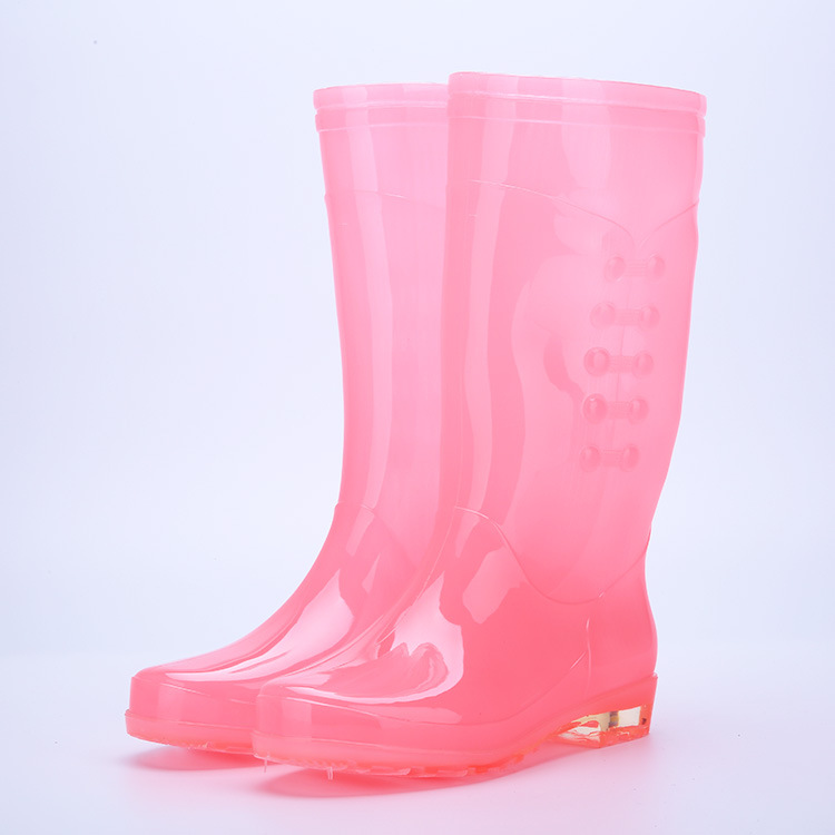 안감 없는 여성용 수입 하이탑 워터슈즈, 젤리 롱 레인부츠, 방수, 미끄럼 방지, 속건, 패셔너블한 부드러운 고무 투명 레인부츠