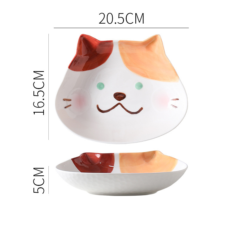 손잡이 그릇과 접시 샐러드 국수 그릇 손으로 그린 가정용 그릇과 접시 컵이있는 새로운 귀여운 새끼 고양이 세라믹 그릇