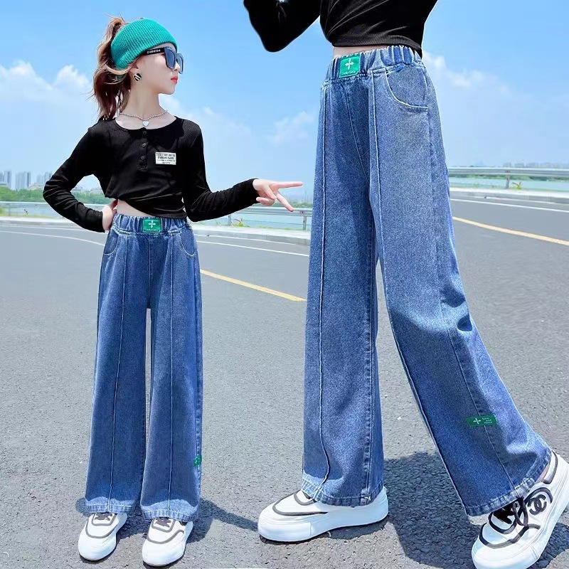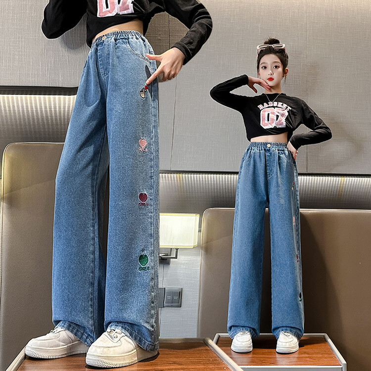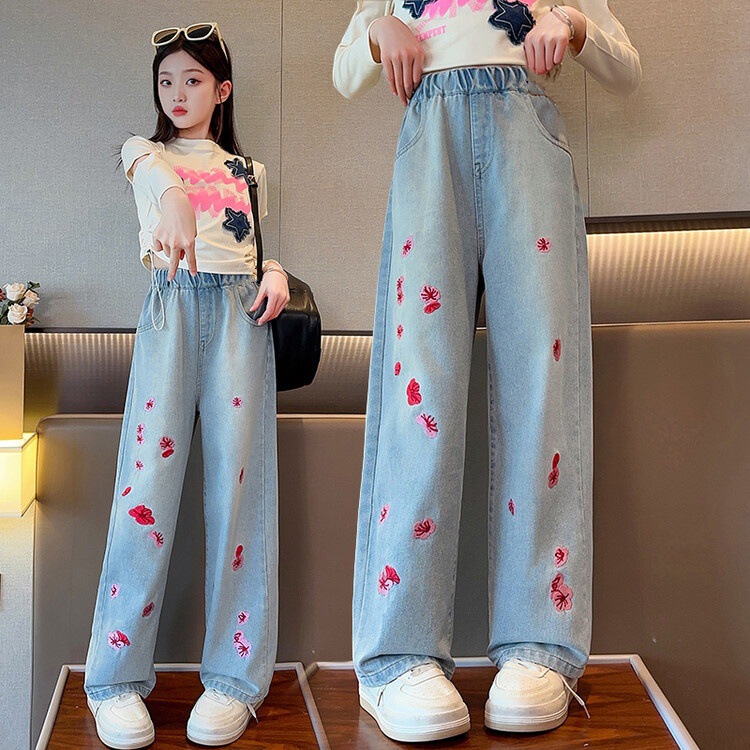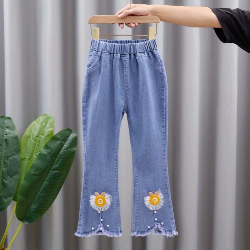 소녀 데님 꽃 바지 2024 새로운 봄과 가을 서양식 캐주얼 슬림 핏 어린이 한국 스트레치 바지스토어 가기