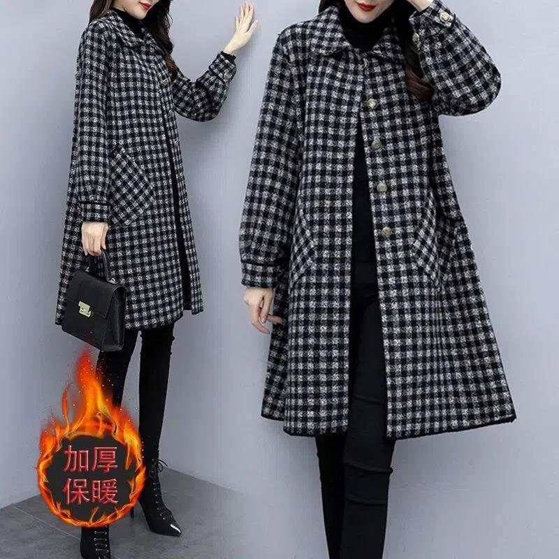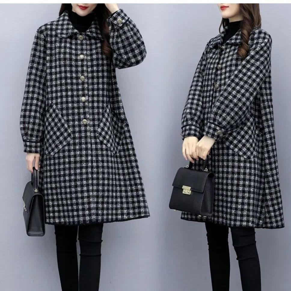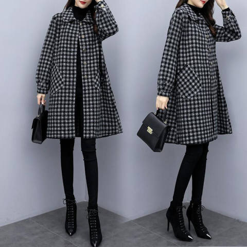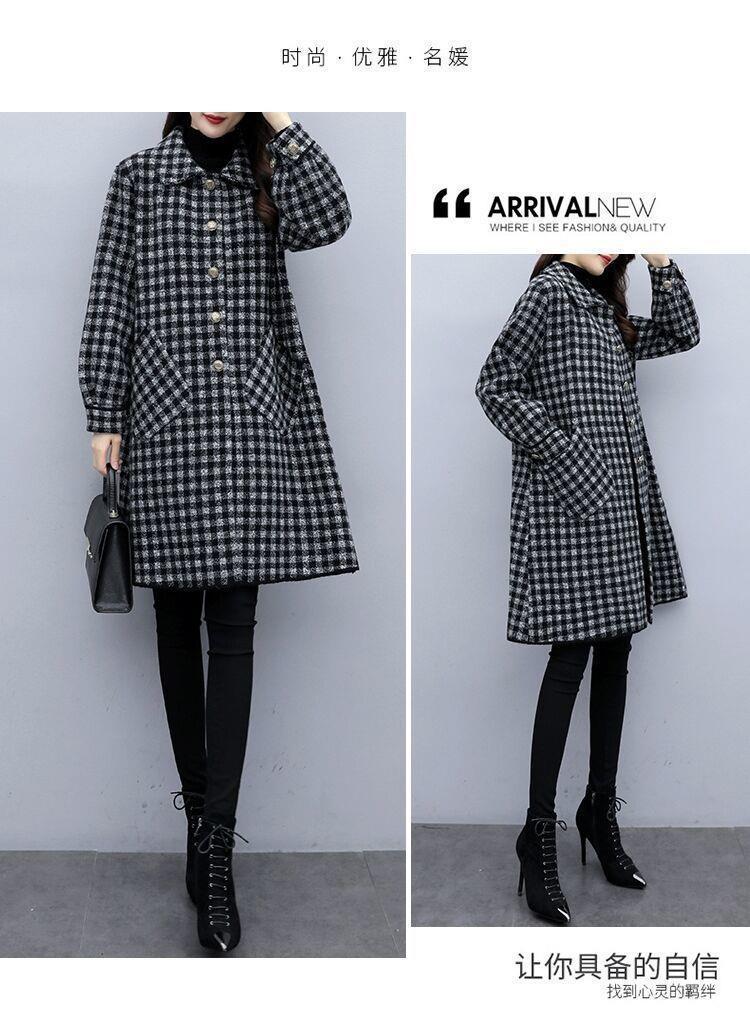 가을/겨울 새로운 통통녀 플러스 사이즈 200kg 모직 코트 여성 느슨한 슬림 롱 코트 겉옷의 한국어 버전스토어 가기