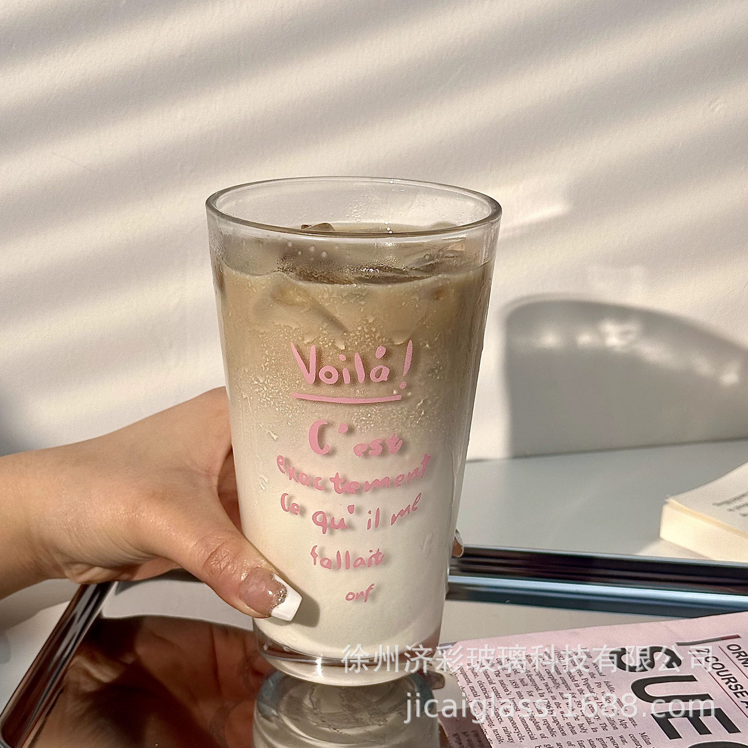 틈새 빛 럭셔리 유리 물 컵 여자 커피 컵 고온 저항 음료 꽃 찻잔 광고 선물 컵 인쇄 로고스토어 가기