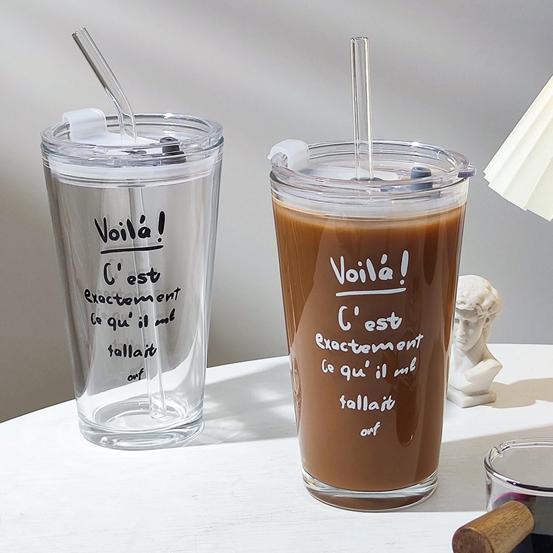 • 파란색 글자컵 + 뚜껑 + 투명유리 빨대 [1박스 58개입]