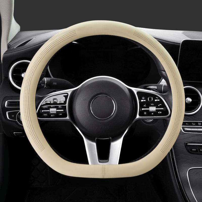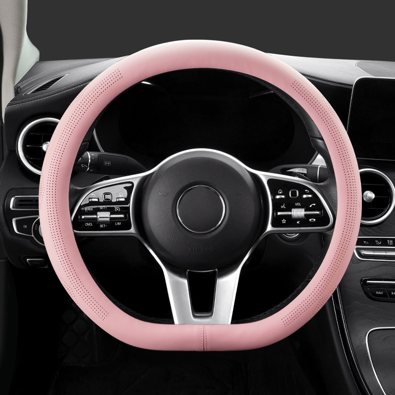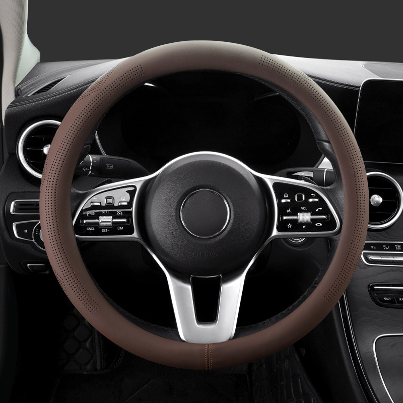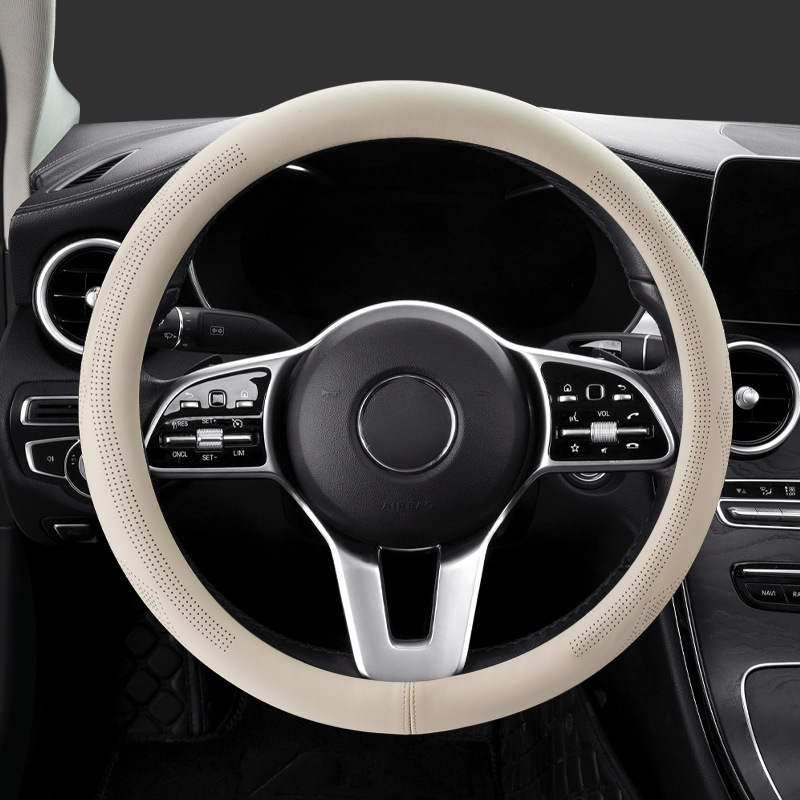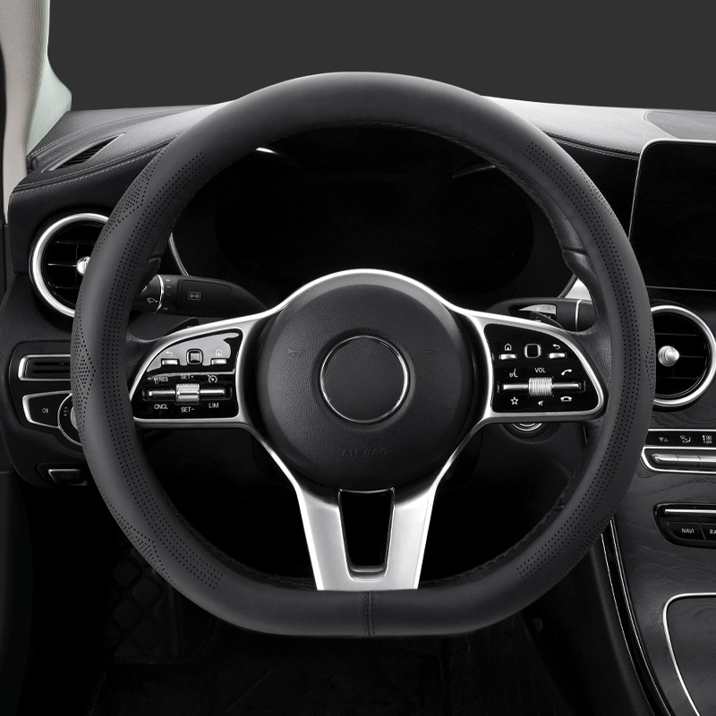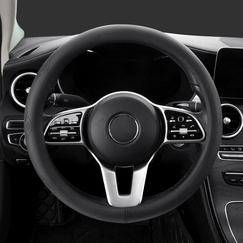 국경 간 대외 무역 제조 업체, 새로운 소 가죽 핸들 커버 자동차 핸들 커버 탄소 섬유 펀칭 통기성 스티어링 휠 커버 생성스토어 가기
