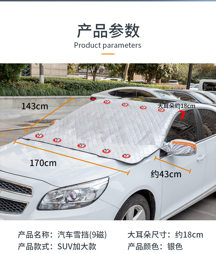 1、铝膜材质,不伤车漆,防晒、隔热、防雨雪、防风尘、防划痕、防紫外线、抗拉力强。