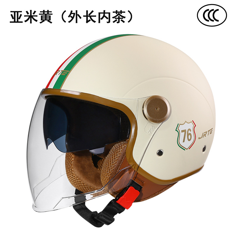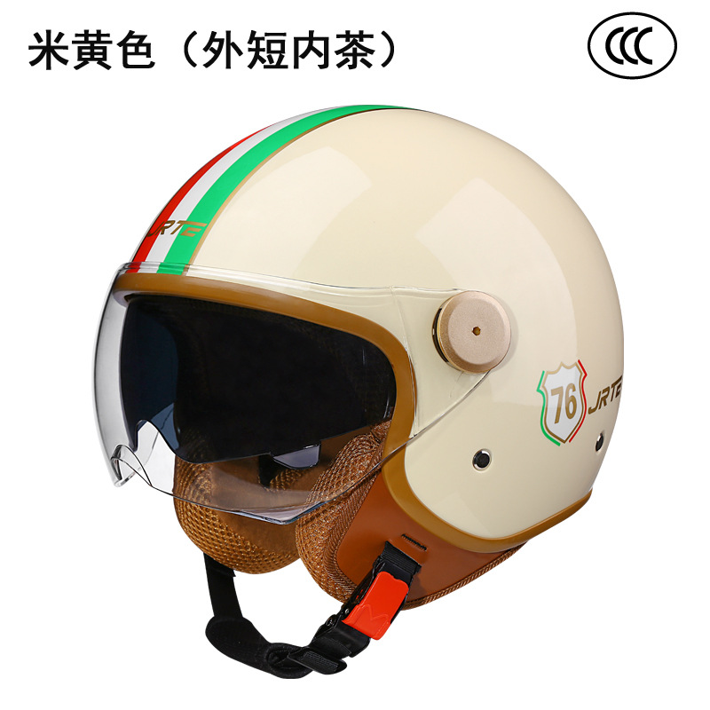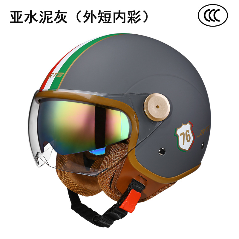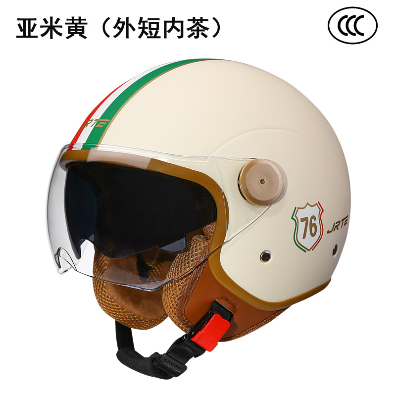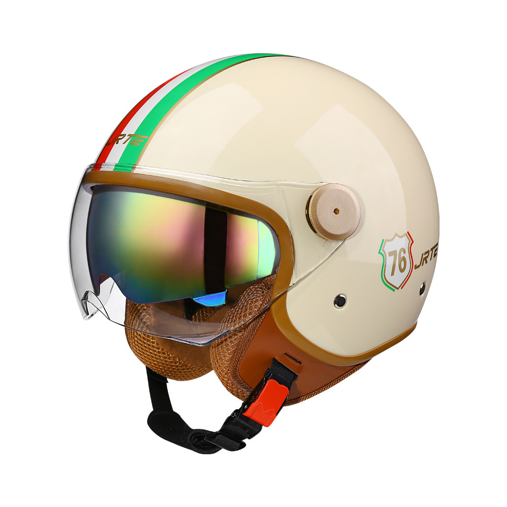 JiaRui 듀얼 미러 하프 헬멧, 오토바이, 모터사이클, 할리 헬멧, 남녀공용, 사계절 사용 가능, 보온 안전모, 레트로 스타일