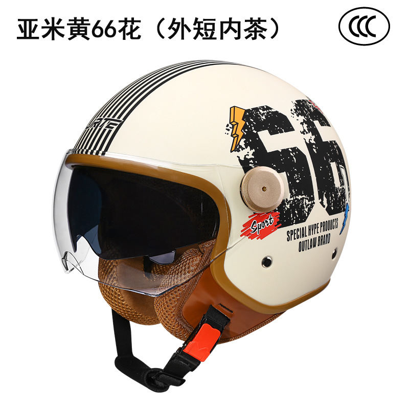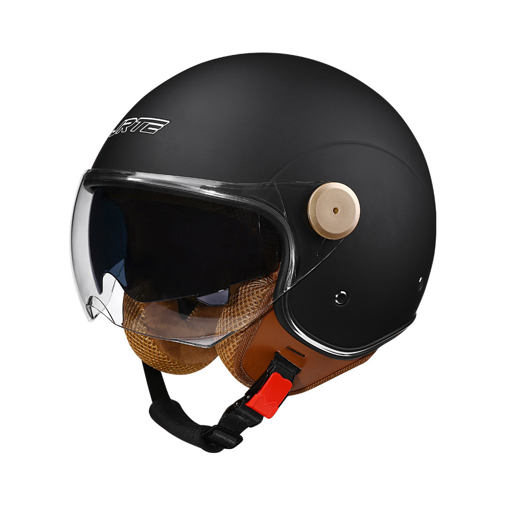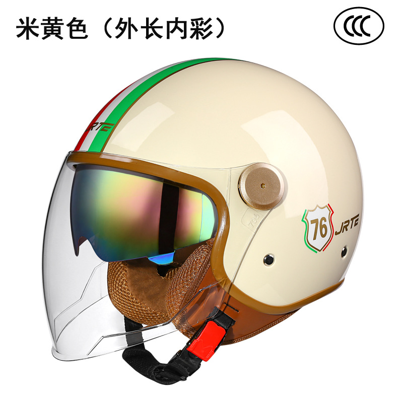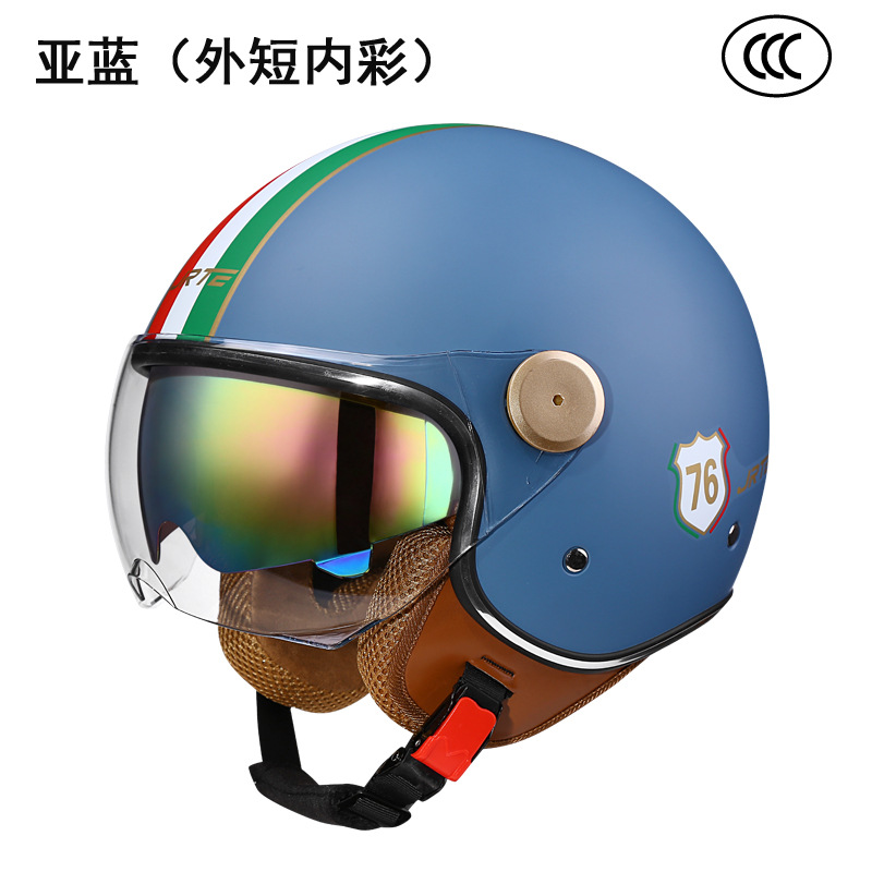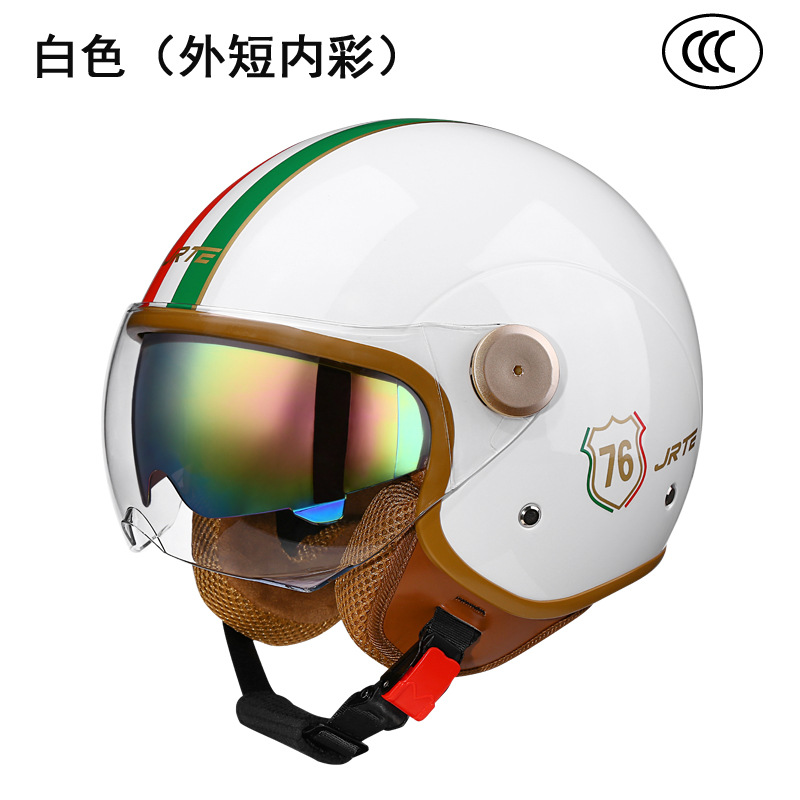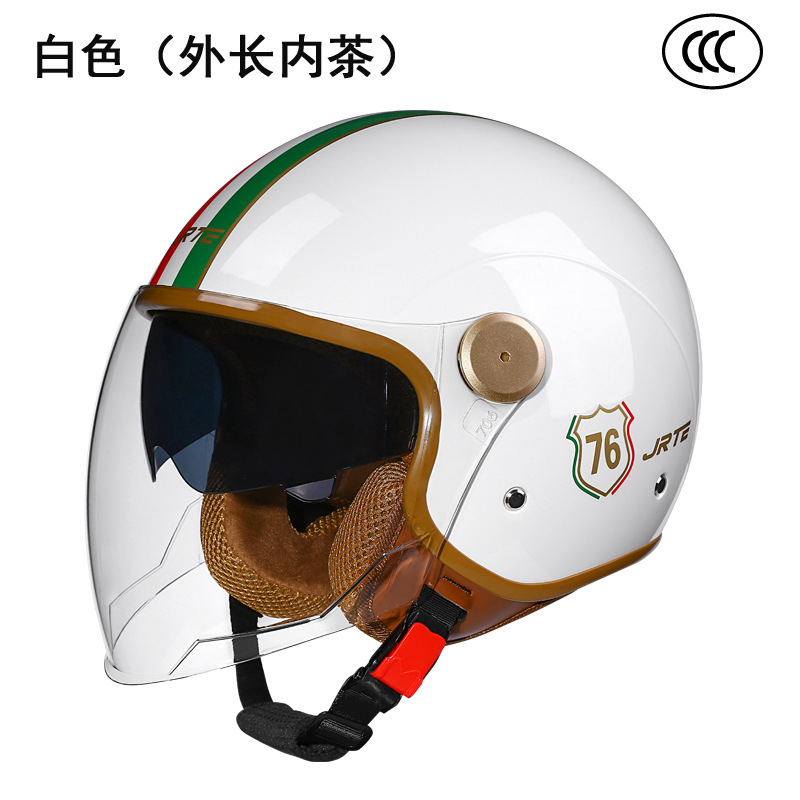 JiaRui 듀얼 미러 하프 헬멧, 오토바이, 모터사이클, 할리 헬멧, 남녀공용, 사계절 사용 가능, 보온 안전모, 레트로 스타일