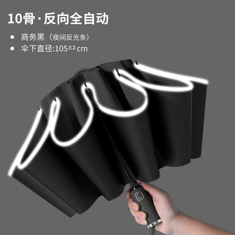 • [옵시디언 블랙] 업그레이드된 10본 자동 역접이식 우산