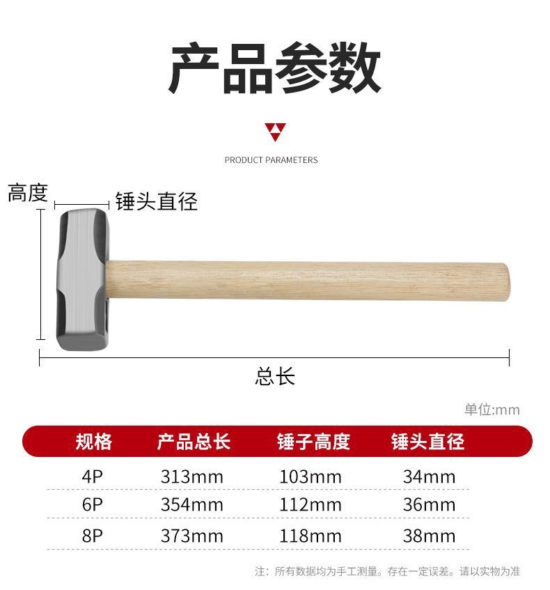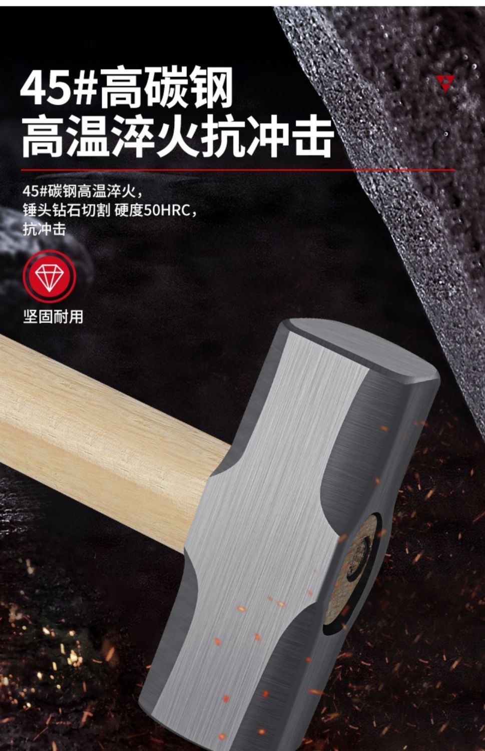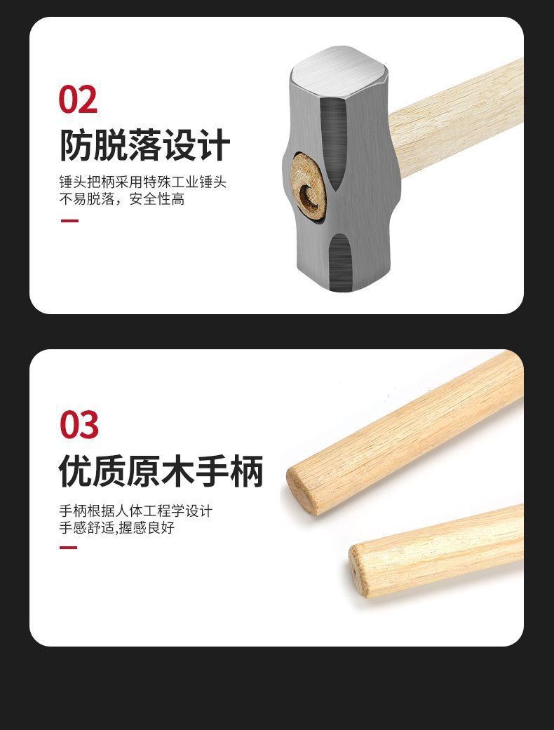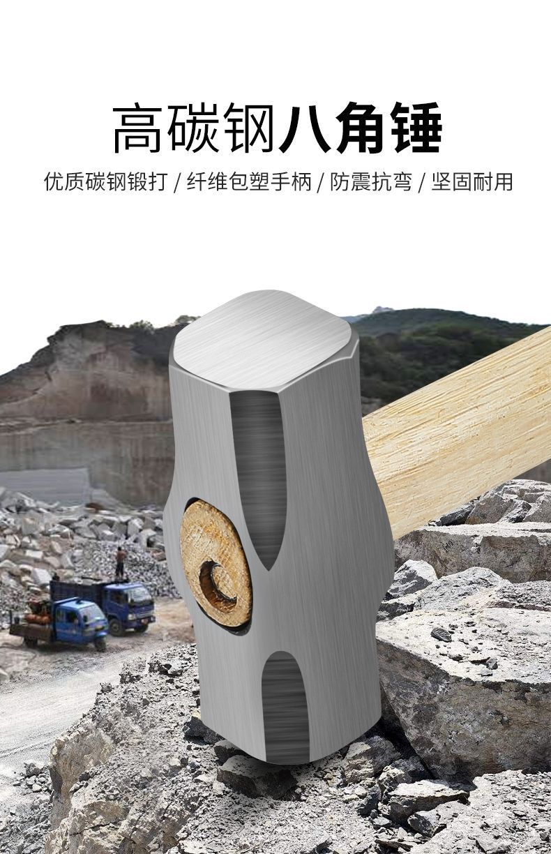 팔각형 망치 벽 스매싱 돌 특수 나무 손잡이 무거운 돌 망치 단단한 벽 제거 도구 사각형 머리 망치 대형