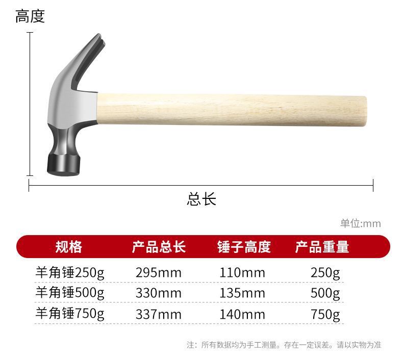 • [피팅 해머 솔리드 우드 핸들] 100g