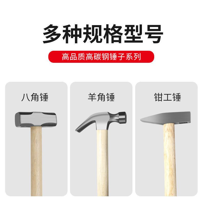 팔각형 망치 벽 스매싱 돌 특수 나무 손잡이 무거운 돌 망치 단단한 벽 제거 도구 사각형 머리 망치 대형스토어 가기