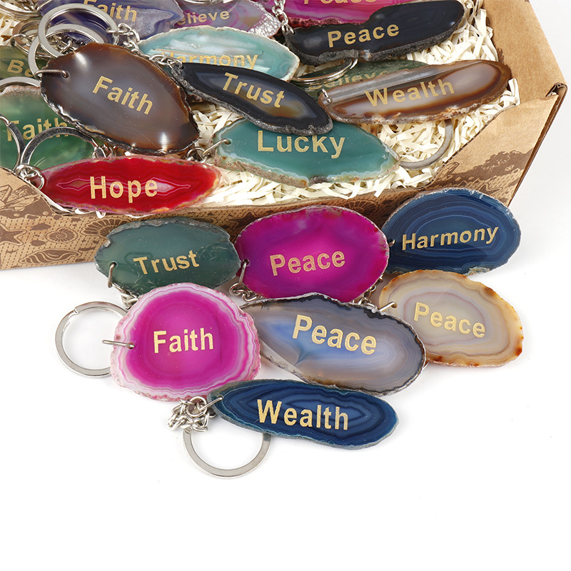 天然玛瑙片钥匙扣,刻字寓意多样,如有特别需要可联系客服