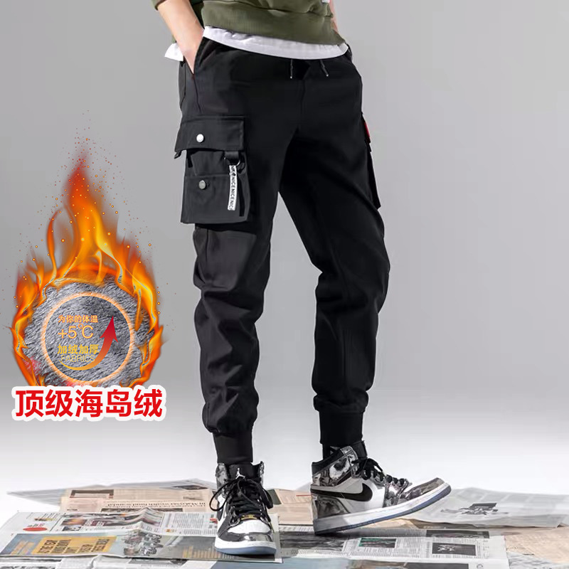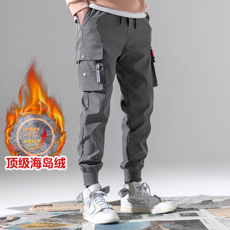 Hongxinjie 가을 겨울 캐주얼 바지 남성 작업복 플러스 벨벳 스웨트 팬츠 남성 레깅스 스웨트 팬츠 트렌디 오버올 제조업체스토어 가기